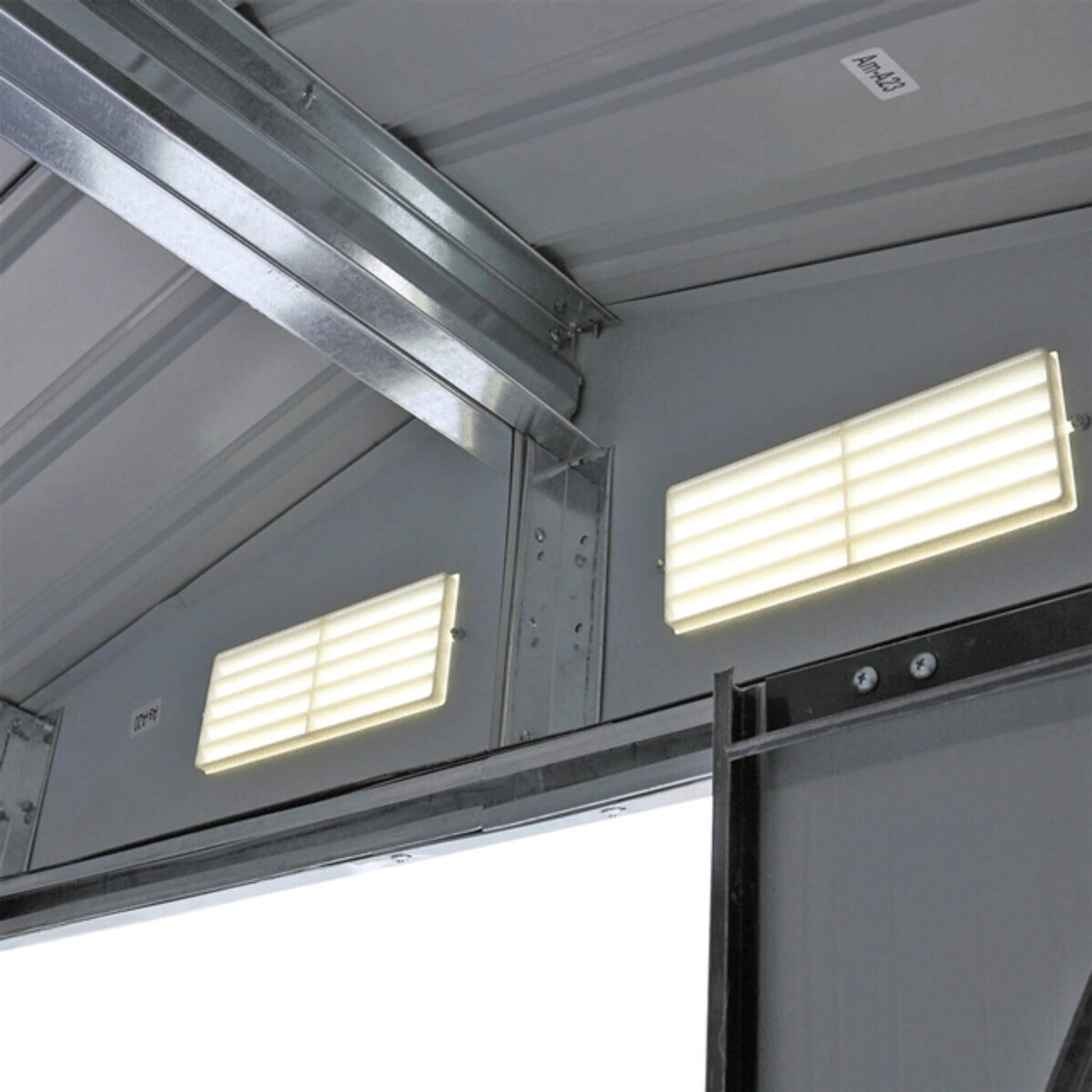 Built with solid metal walls, the outdoor metal shed is sturdy enough to contain multiple items in one go. In fact, the garden shed comes with slidable doors that help you save space and makes accessing your tool much easier.