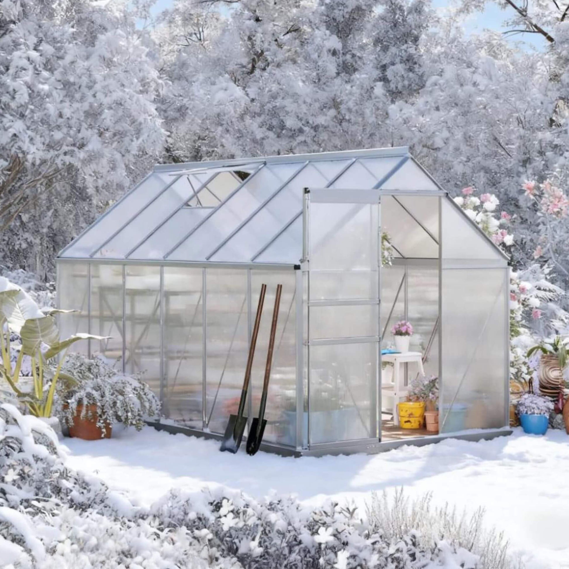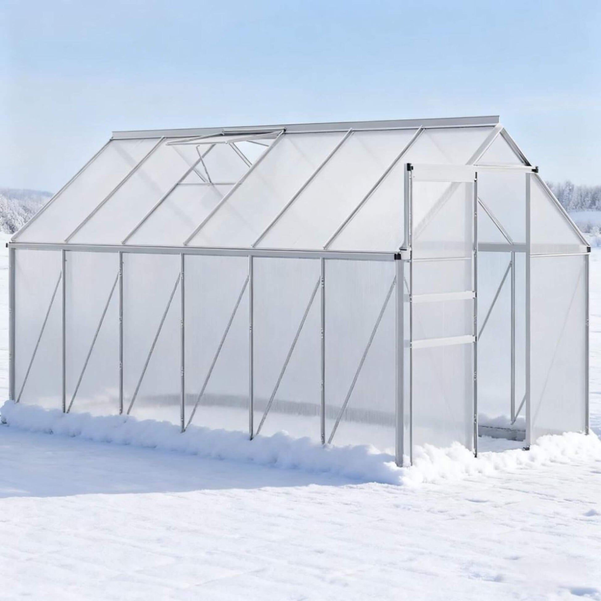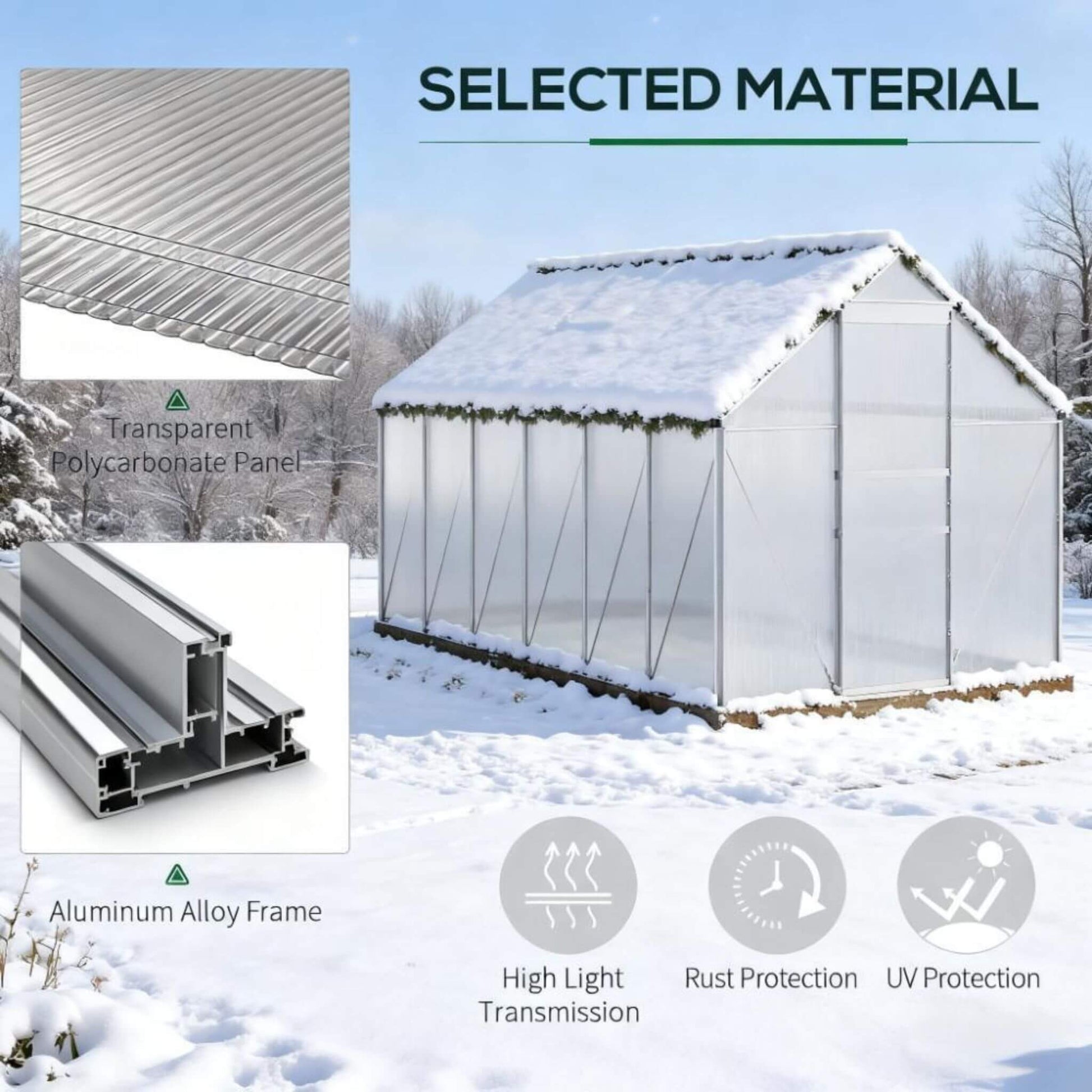 Built for resilience, the greenhouse features a reinforced, rust-resistant aluminum frame designed to withstand the elements year after year. The high-quality polycarbonate panels provide superior insulation while allowing essential sunlight to diffuse evenly throughout the space, ensuring your plants get the light they need without the risk of scorching. It’s a durable fortress that stands strong against weather fluctuations, giving you peace of mind in every season.