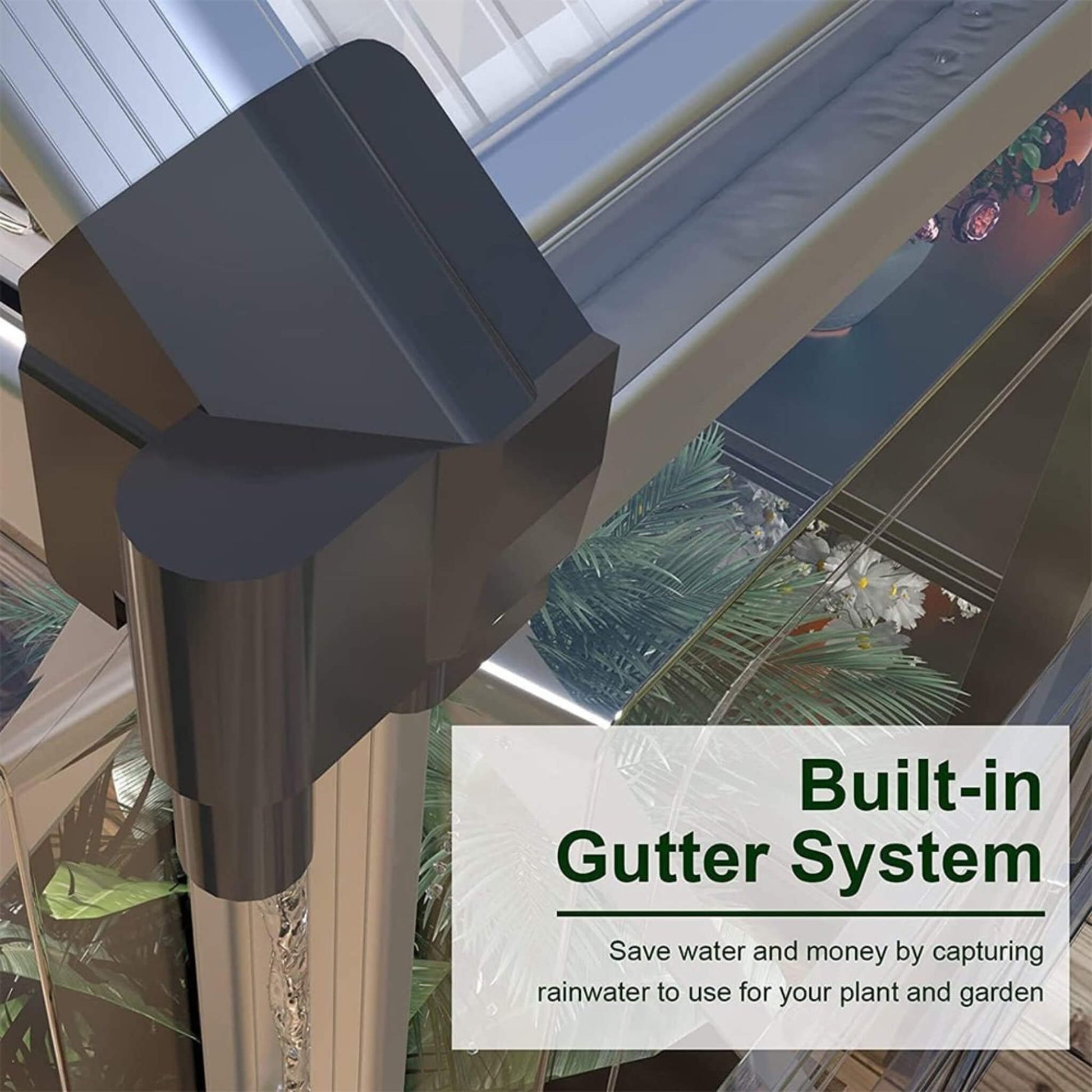 With two integrated window vents that offer additional ventilation as well as a robust locking system that ensures the safety of your crops, this wonderful structure will provide you with all the comforts that make gardening fun and rewarding. The built-in gutter system on each side also makes it simple to keep your plants hydrated without worrying about excessive water in one area. And we haven't even mentioned the convenience factor yet: with its easy-to-follow instructions and tools included, 3 competent DIY enthusiasts can assemble this greenhouse in just 6 hours! Get ready to relish in the joys of gardening today!