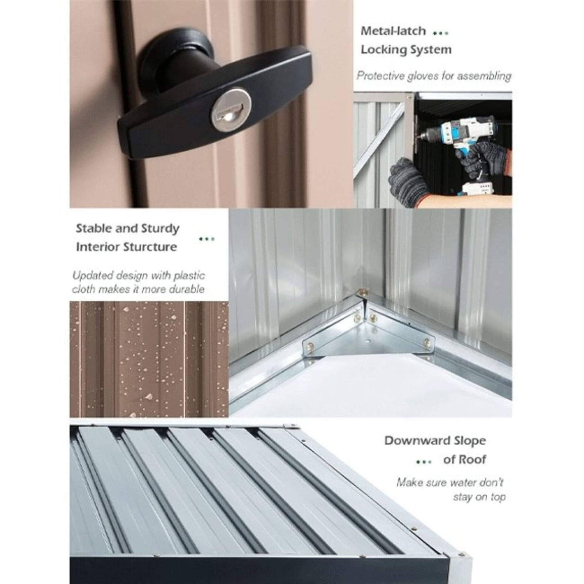 Transform your outdoor space with this elegant 8x10' Heavy Duty Metal Garden Storage Shed that seamlessly combines sophisticated design with practical functionality. Crafted from premium galvanized steel with a rich brown finish, this versatile storage solution elevates your property's aesthetic while providing the spacious sanctuary your gardening tools and equipment deserve. The thoughtfully designed double push/pull doors offer effortless access, while the secure locking system ensures your valuable items remain protected. Whether you're organizing seasonal decorations, housing lawn equipment, or creating a dedicated workspace, this beautifully engineered shed delivers the perfect balance of style and substance for discerning homeowners.