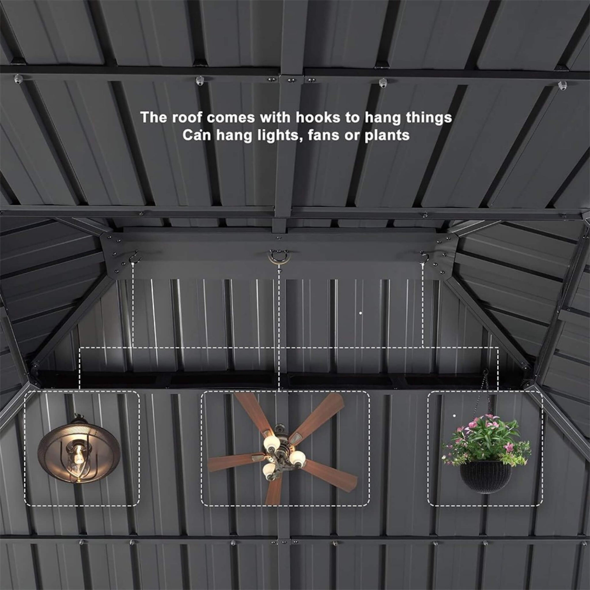 - Measuring an expansive 10' X 13', the PLF Gazebo boasts a fade-resistant and rust-resistant galvanized steel top. This robust construction ensures that your gazebo stands strong against the elements, from scorching sun rays to heavy snowfall, offering reliable protection year after year.