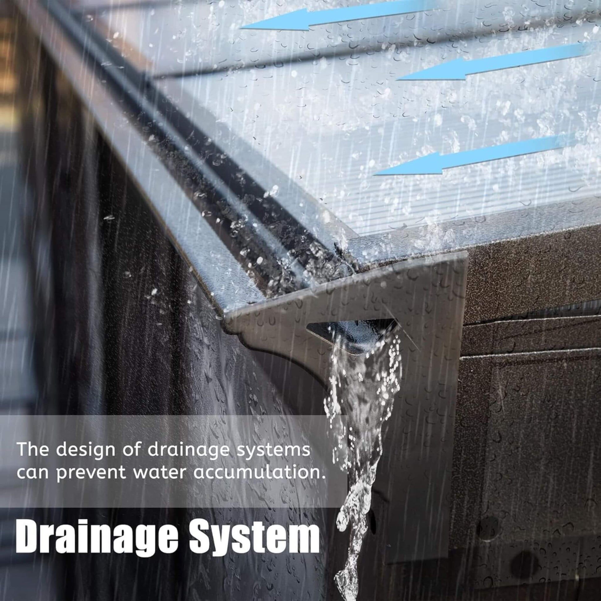 - Efficiently directs rainwater and snow to avoid accumulation and maintain cleanliness.