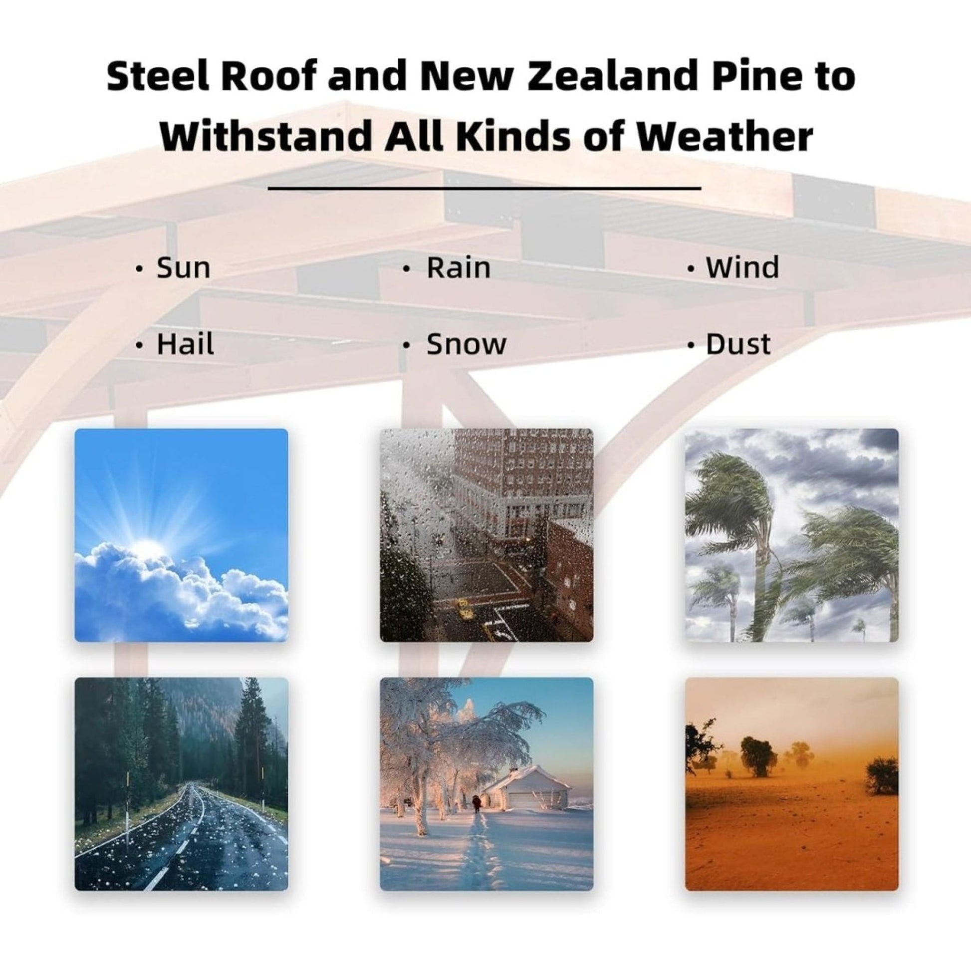 Elevate your home's exterior with the Alora Premium Heavy-Duty Pine Wood Arc-Shaped Carport. Its sleek, curved architecture brings a modern elegance to your driveway while smartly maximizing space in areas where parking is tight. You don't have to choose between utility and aesthetics; this structure is designed to be the envy of the neighborhood while keeping your vehicles covered.