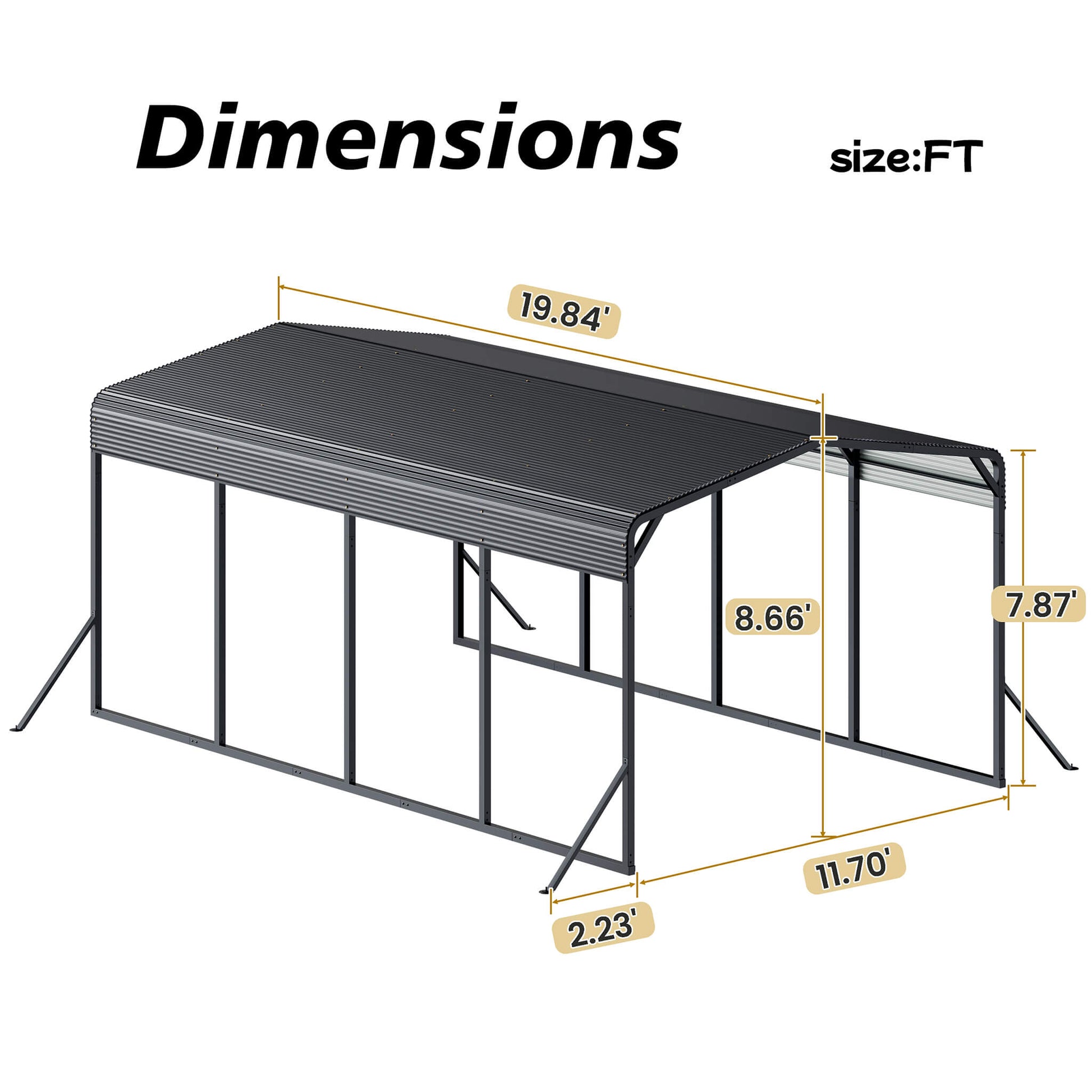 But its usefulness doesn't stop at vehicle protection! This versatile 12x20 ft structure is the perfect multi-purpose addition to your property. Use it to shelter tractors and other large equipment, or instantly create a covered space for backyard parties, weddings, and other outdoor events. The sleek gray finish adds a modern, stylish touch to any outdoor area. Shipped with a detailed assembly guide and all the necessary tools, setting up your new all-weather refuge is straightforward and hassle-free.