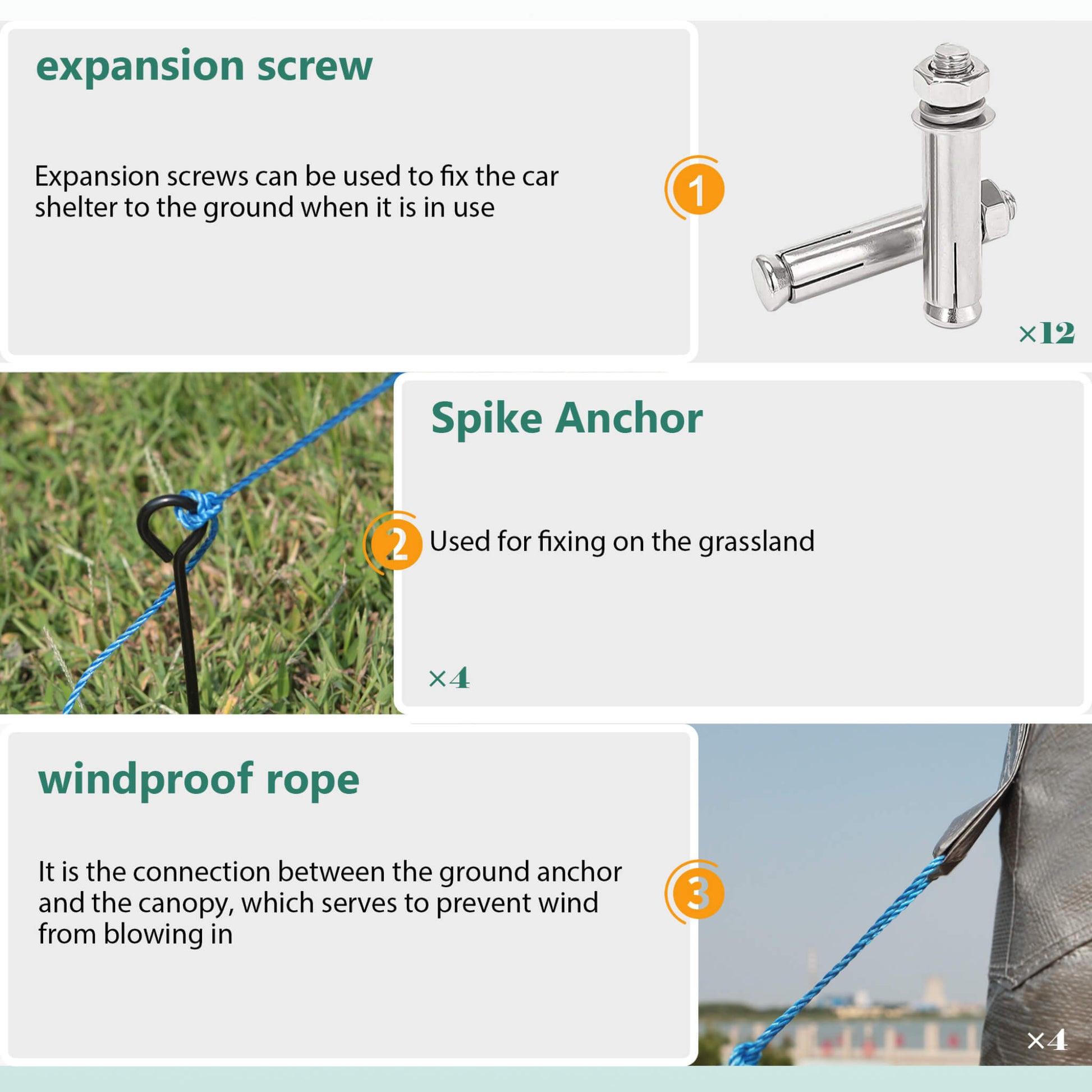 - Setting up your new carport is a breeze! The intuitive design requires no tools and can be assembled by 2-3 adults using the clear, step-by-step instructions. Reinforced windproof ropes are also included for enhanced stability.