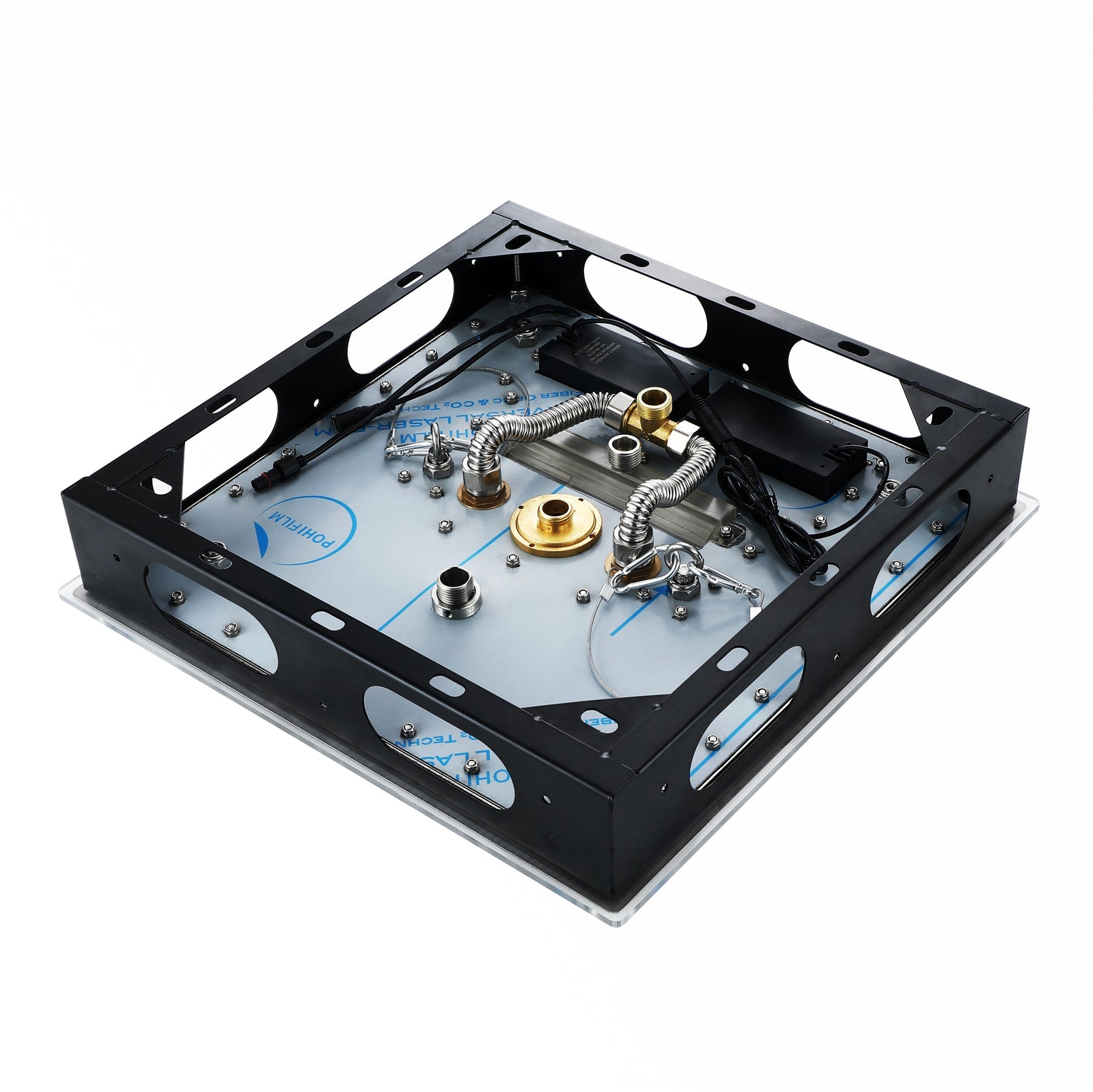 The shower head, boasting a generous 20 x 20-inch size, delivers a refreshing rainfall and waterfall experience. The system is enhanced with 64 LED lights and a Bluetooth speaker, integrated into the showerhead, to create an immersive atmosphere. The LED lights and music can be controlled via the remote panel, offering the flexibility to turn them on or off as you shower.