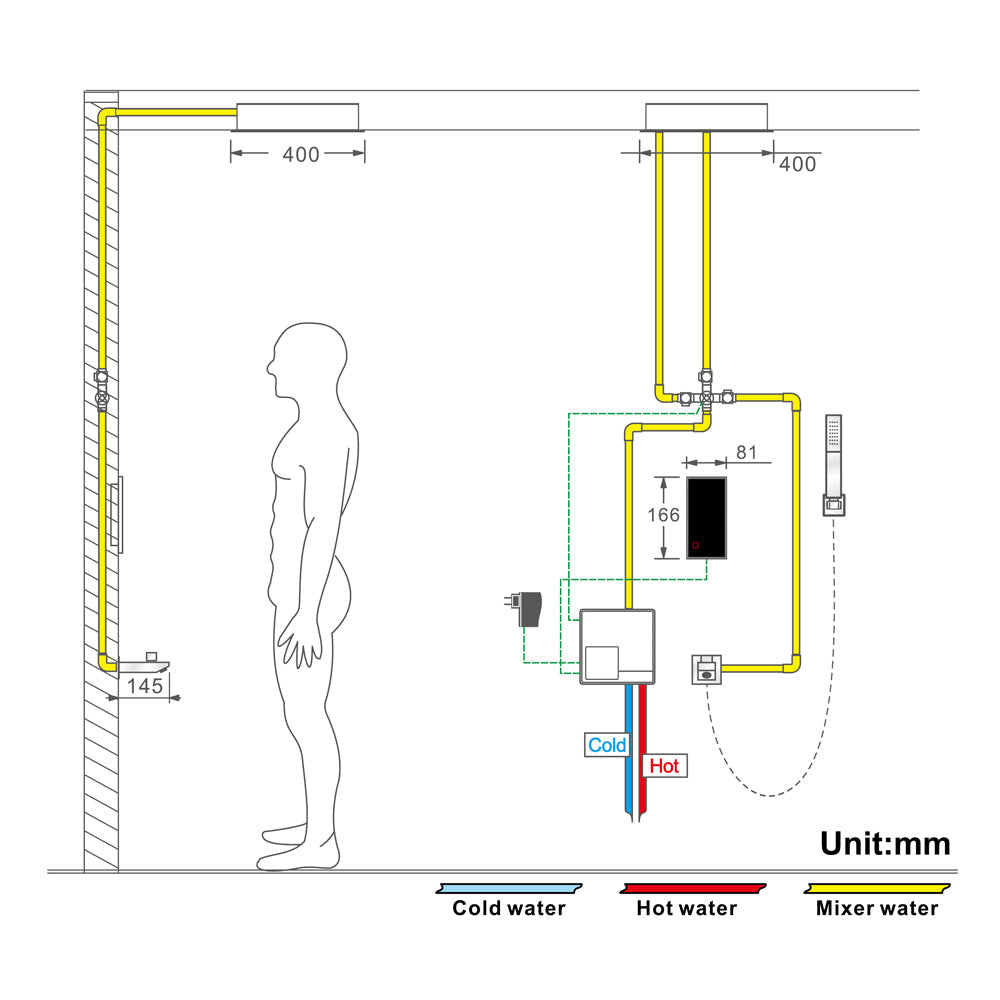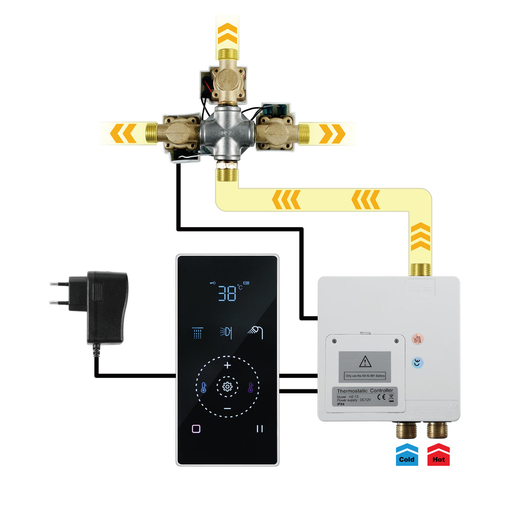 Controller Panel: The included controller panel allows for easy operation of the various functions of the shower system.