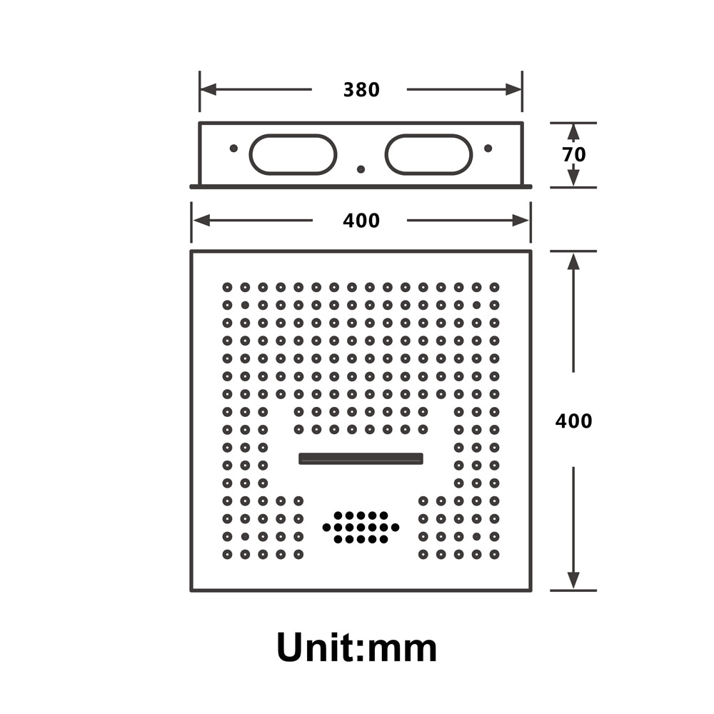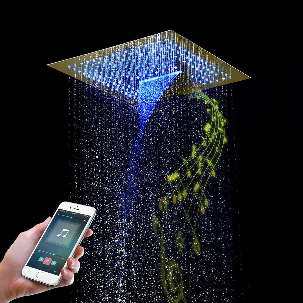 16x16 inch Stainless Steel Rainfall Waterfall Shower Head: Wit;h bluetooth music and 64 LED lights and remote panel control led light and your cell phone control music