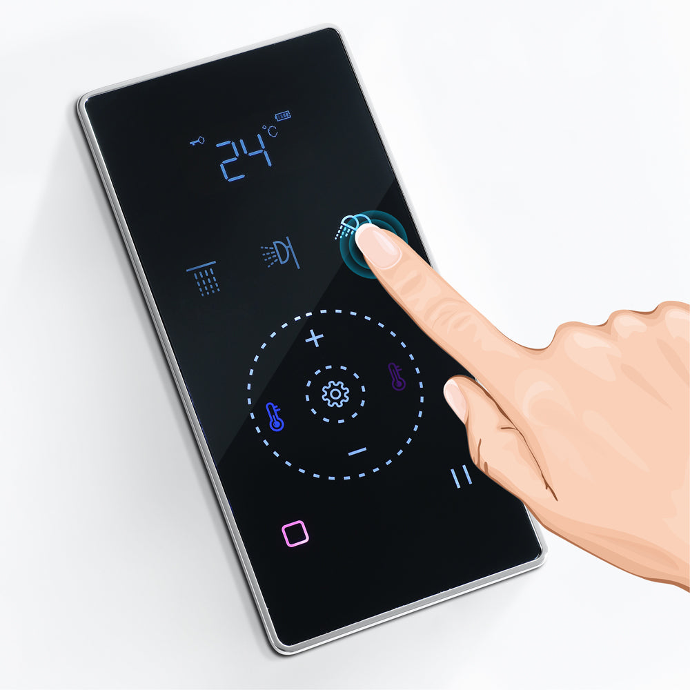 Experience the ultimate in shower luxury with this multifunctional shower system. The system includes a self-cleaning 16x16-inch stainless steel top spray, an intelligent touch panel display shower valve with a water mixing valve, and a variety of other high-quality components that deliver a superior shower experience.