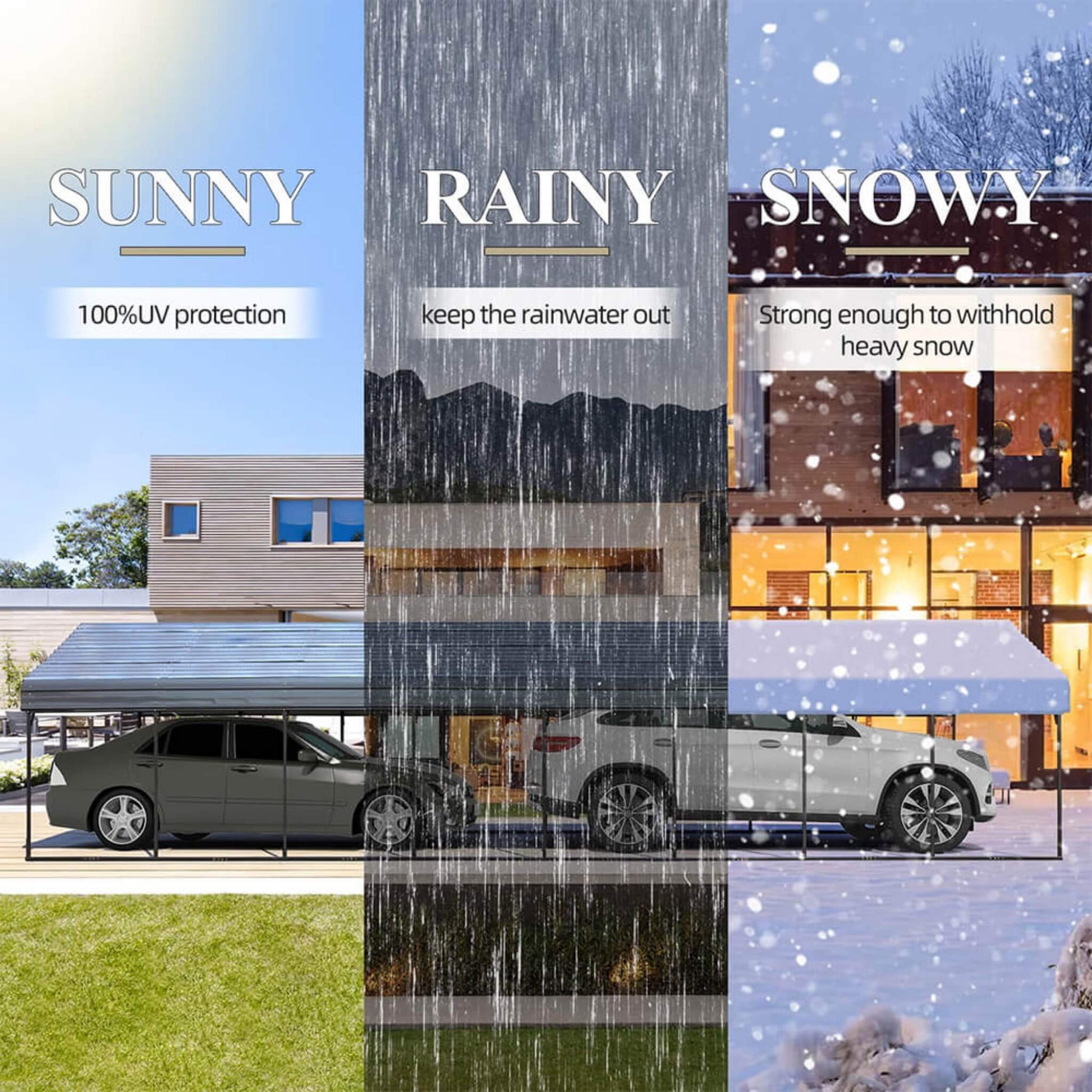 - Keep your cars safe from harsh weather, rust, and damage with a durable, rust-resistant steel roof.