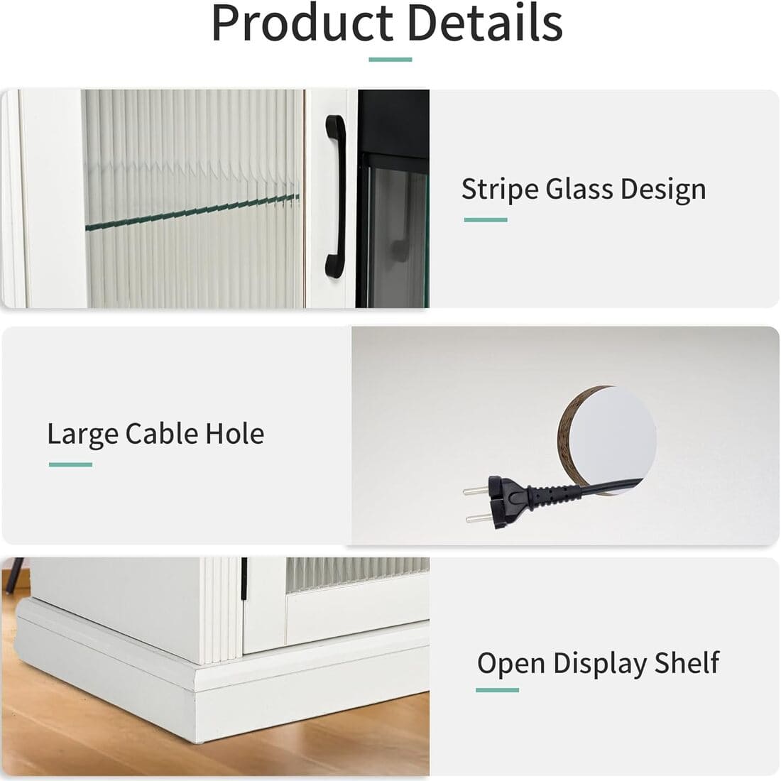 3-Side Glass Display design enhances spatial transparency. Features enlarged cable holes for easy wire management.