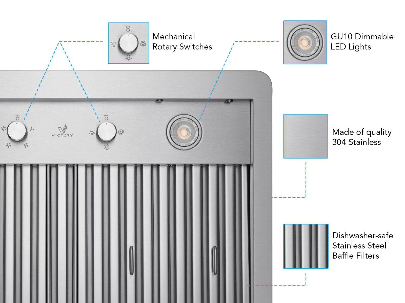 30 Inch 600 CFM Wall Mounted Range Hood - VICTORY Elegant