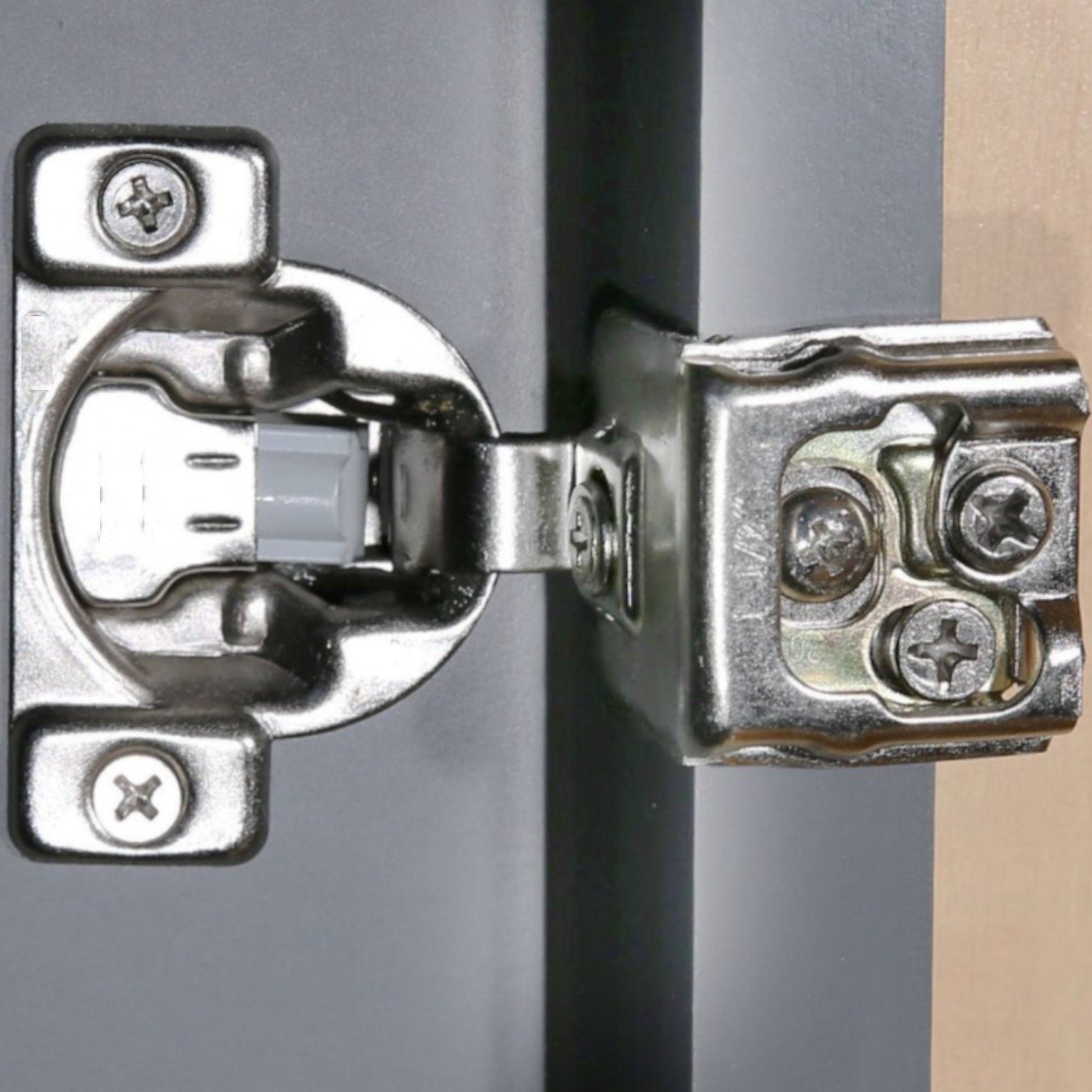 The frame of the door is similar in appearance to a picture frame. It is made of vertical stiles and horizontal rails. The solid wood doors are attached to the door frame with soft close adjustable European hinges. All our doors are larger than the cabinet door opening and sit on top of the frame for a full overlay design.