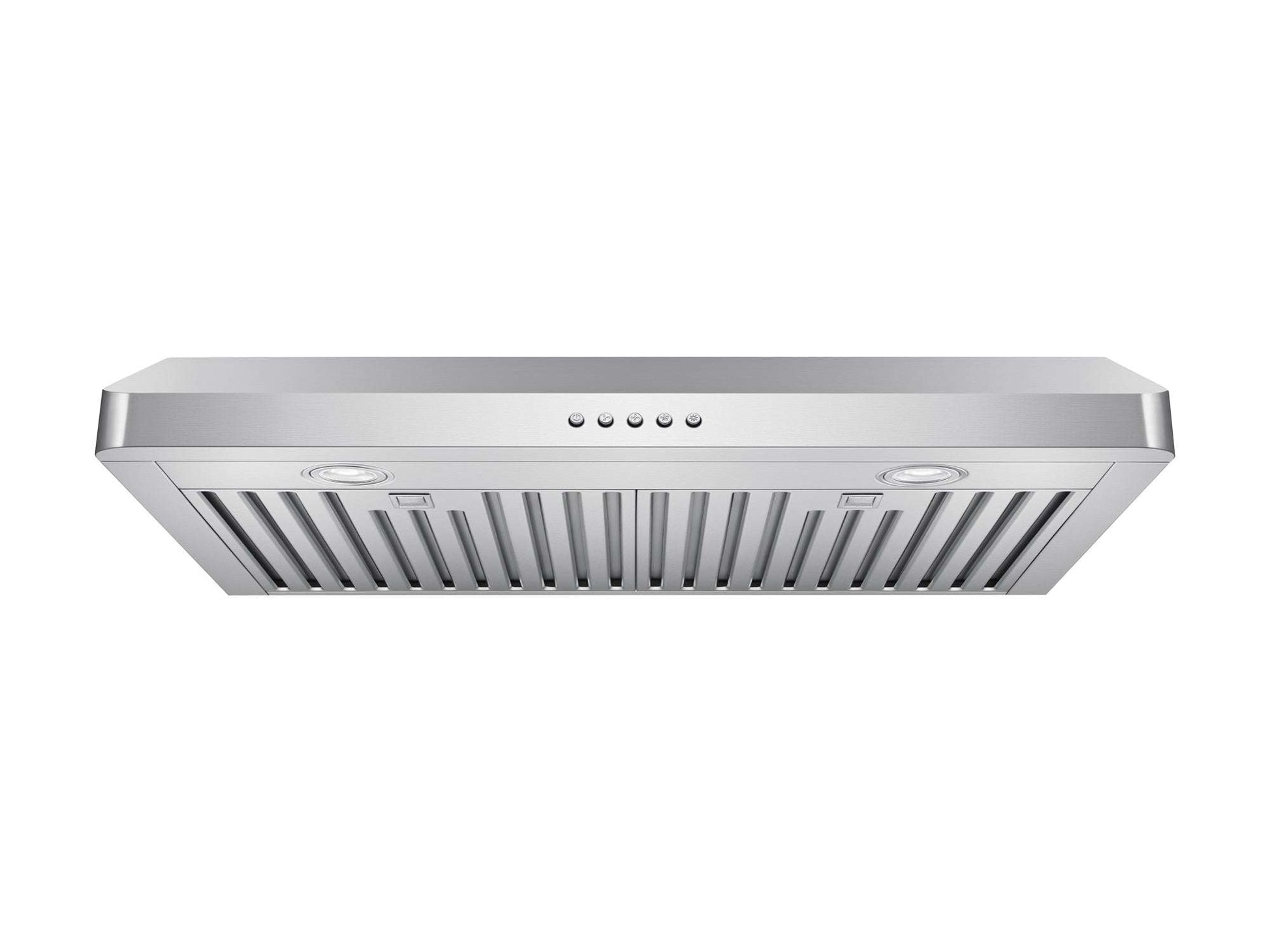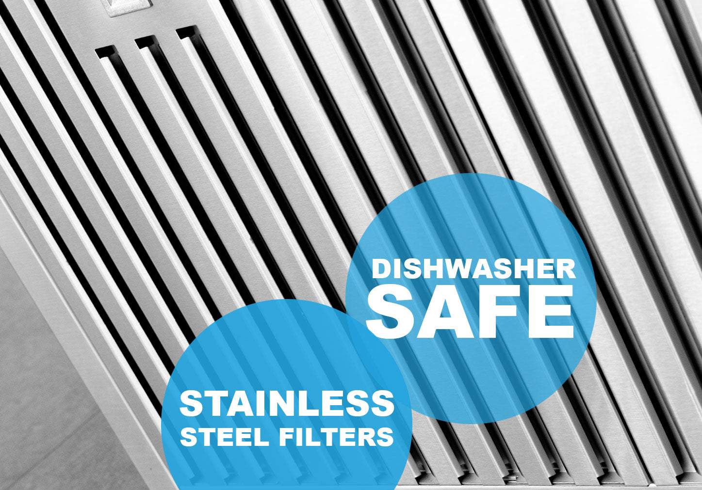 Unlike most slim under-cabinet range hoods which come with cheap plastic motors, the Victory Luna comes with a double metal blower at 600 CFM. The high quality stainless steel filters are also dishwasher safe making them much easier to clean and maintain.
