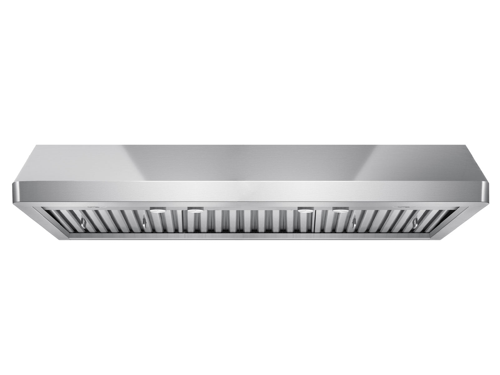 We designed this Under Cabinet Range Hood with rounded corners to give a more sleek and modern design, without compromising on performance and efficiency. This Under Cabinet Range Hood comes with a powerful all metal 1800CFM double blower, making it perfect for heavy duty cooking and gas stoves. The motor has two fans, allowing the fans to spin slower for minimum noise while still having higher suction power. Two 8" ducts are required for this range hood to reach 1800CFM and keep the noise levels low.