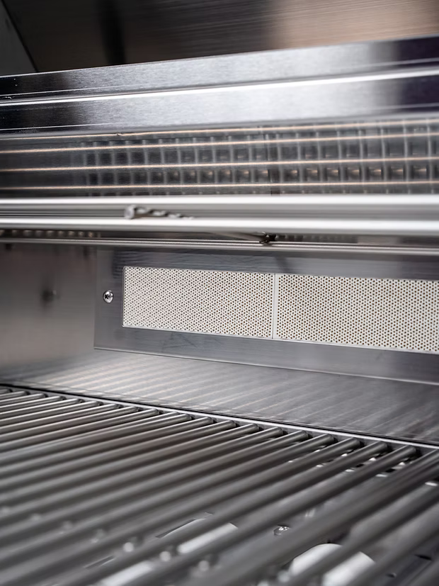 - Commercial-grade ceramic briquette searing system for even heat distribution