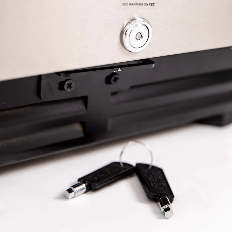 Keep your favorite drinks close by in this 3.1 cubic feet beverage cooler center with stainless steel frame and double pane tempered glass door from Avanti. This built-in perfect, lockable fridge for the office, dorm, man cave, she-shed, bar, bedroom, or anywhere you need a little extra cooling and storage space.