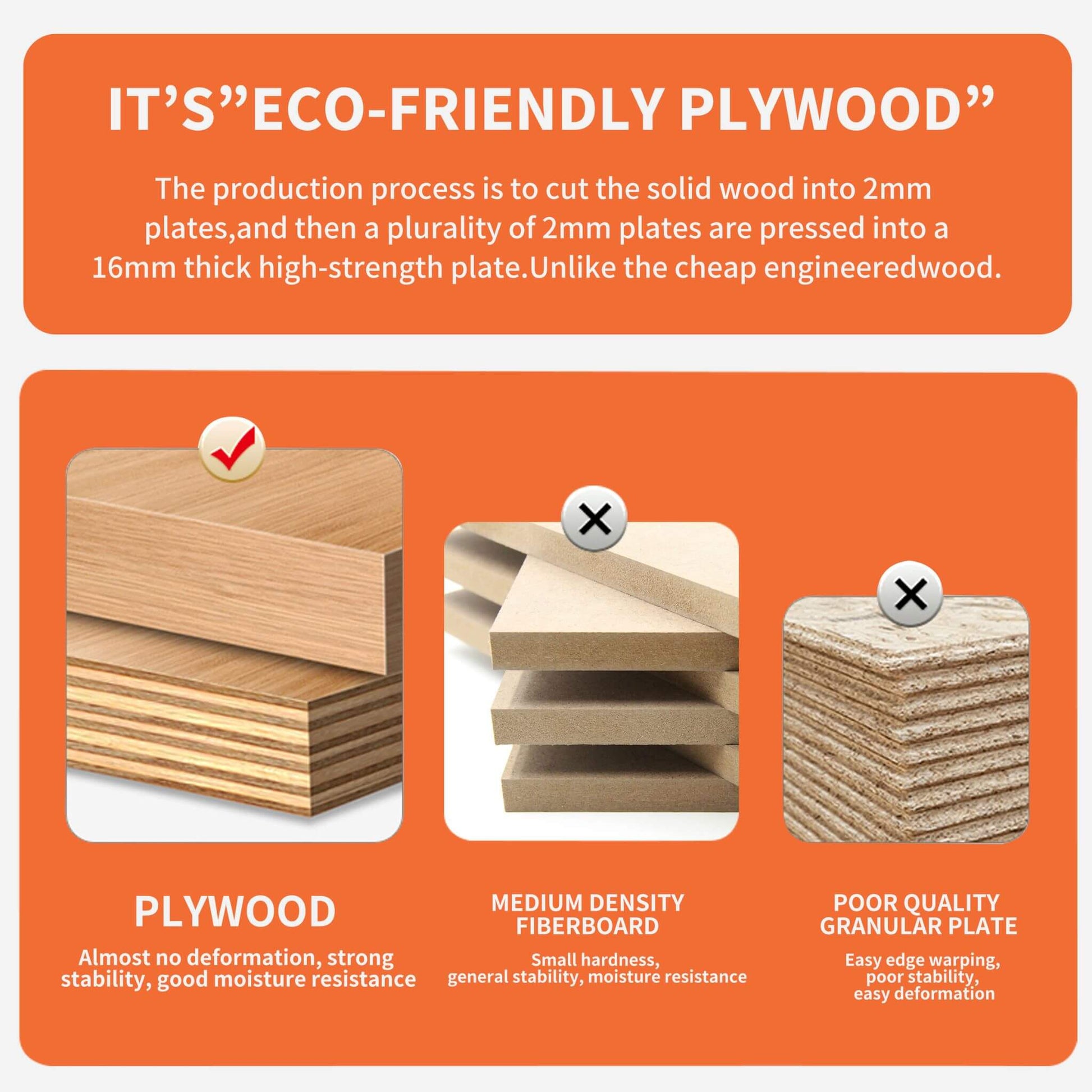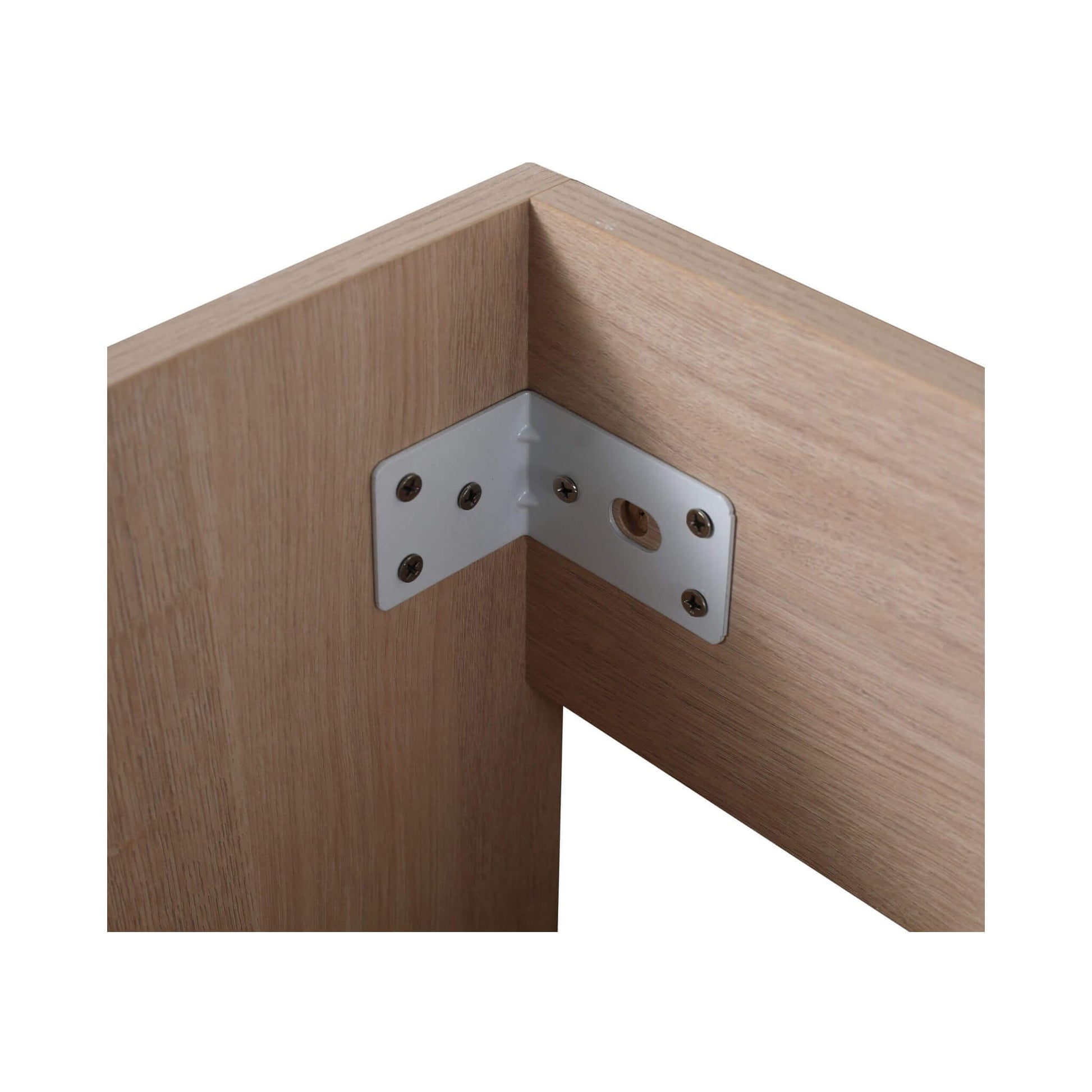 - The vanity base is made from high-quality, eco-friendly plywood finished with a scratch- and water-resistant melamine surface, ensuring it is easy to clean and built to withstand moisture.