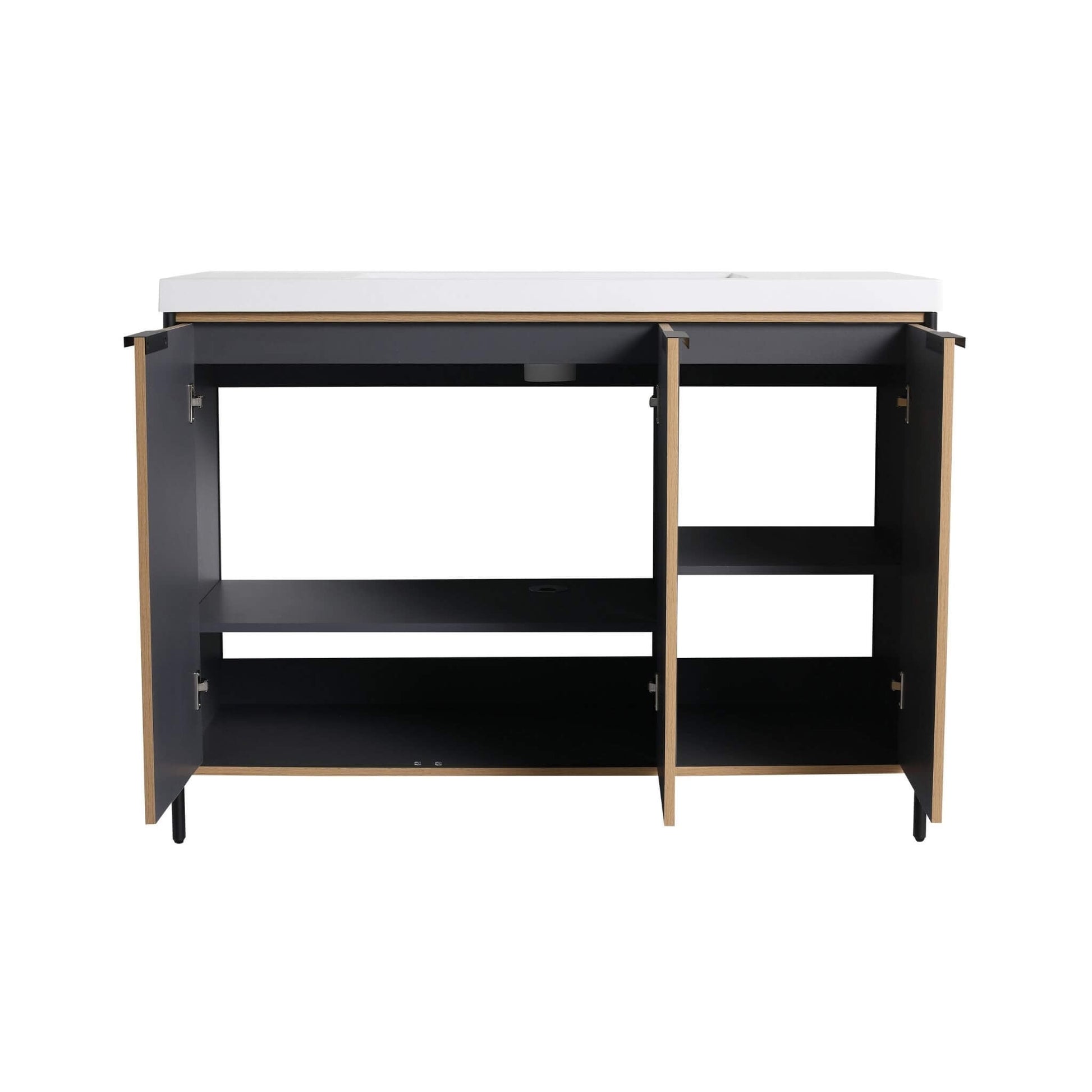 Refresh your bathroom with this 48-Inch Modern Light Coffee Freestanding Vanity, a piece that flawlessly combines contemporary style with everyday function. Its sleek, ergonomic design and integrated resin sink create a clean, unified look that elevates any space. With a focus on durability, this vanity is constructed from high-quality, water-resistant materials, promising to maintain its beauty for years to come.