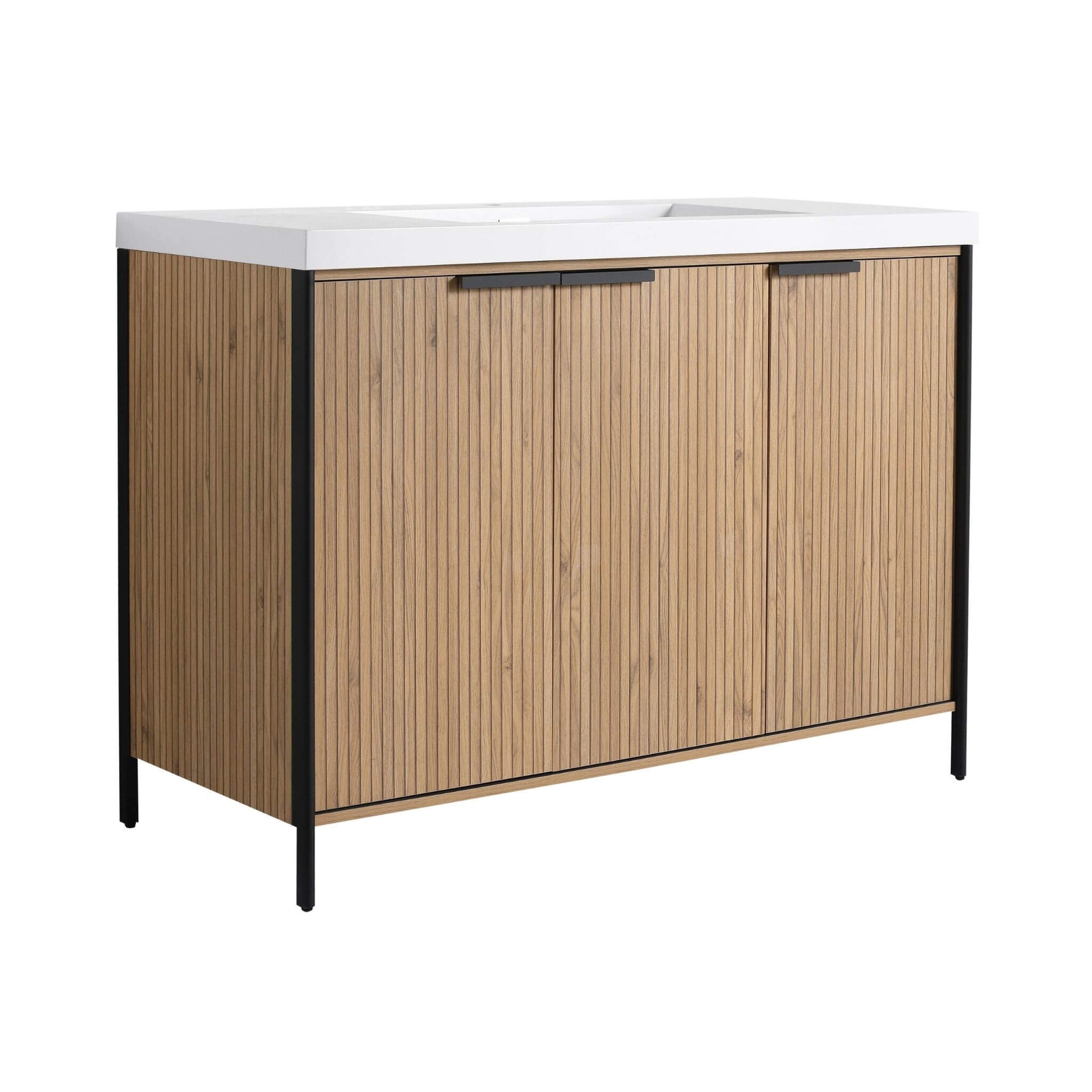 - The vanity base and diversified resin sink are seamlessly integrated, creating a concise, modern look that stands out from traditional ceramic or stone countertops. Its ergonomic design is inspired by real-life needs, bringing a bright, stylish feel to your bathroom.