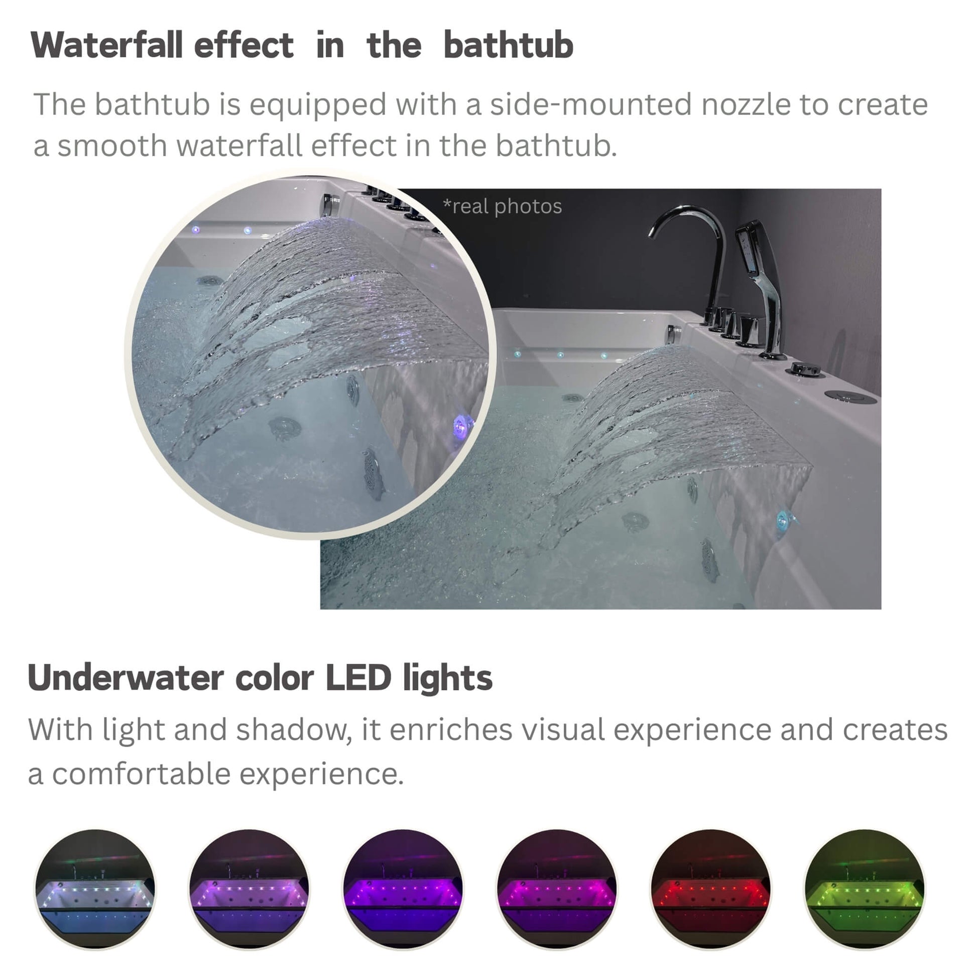 - This jetted tub features a sleek, ergonomic design with user-friendly control knobs, making it simple and hassle-free to adjust settings while enjoying your bath.