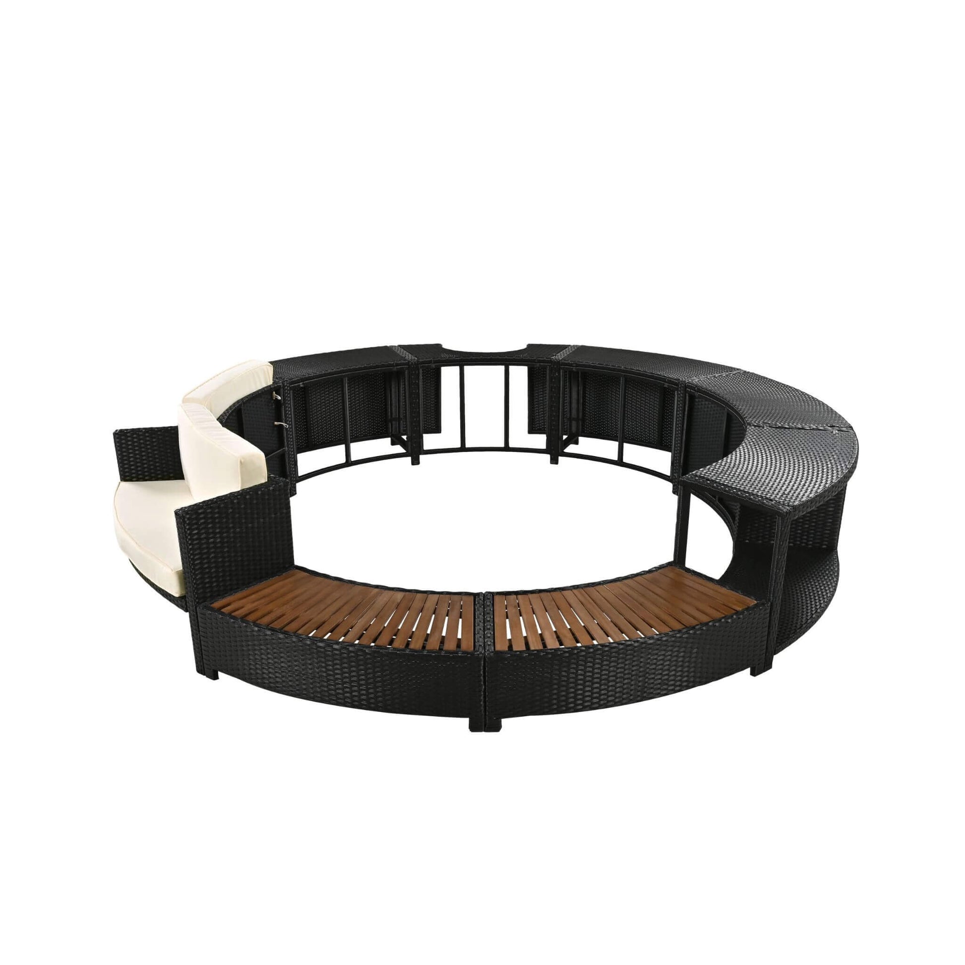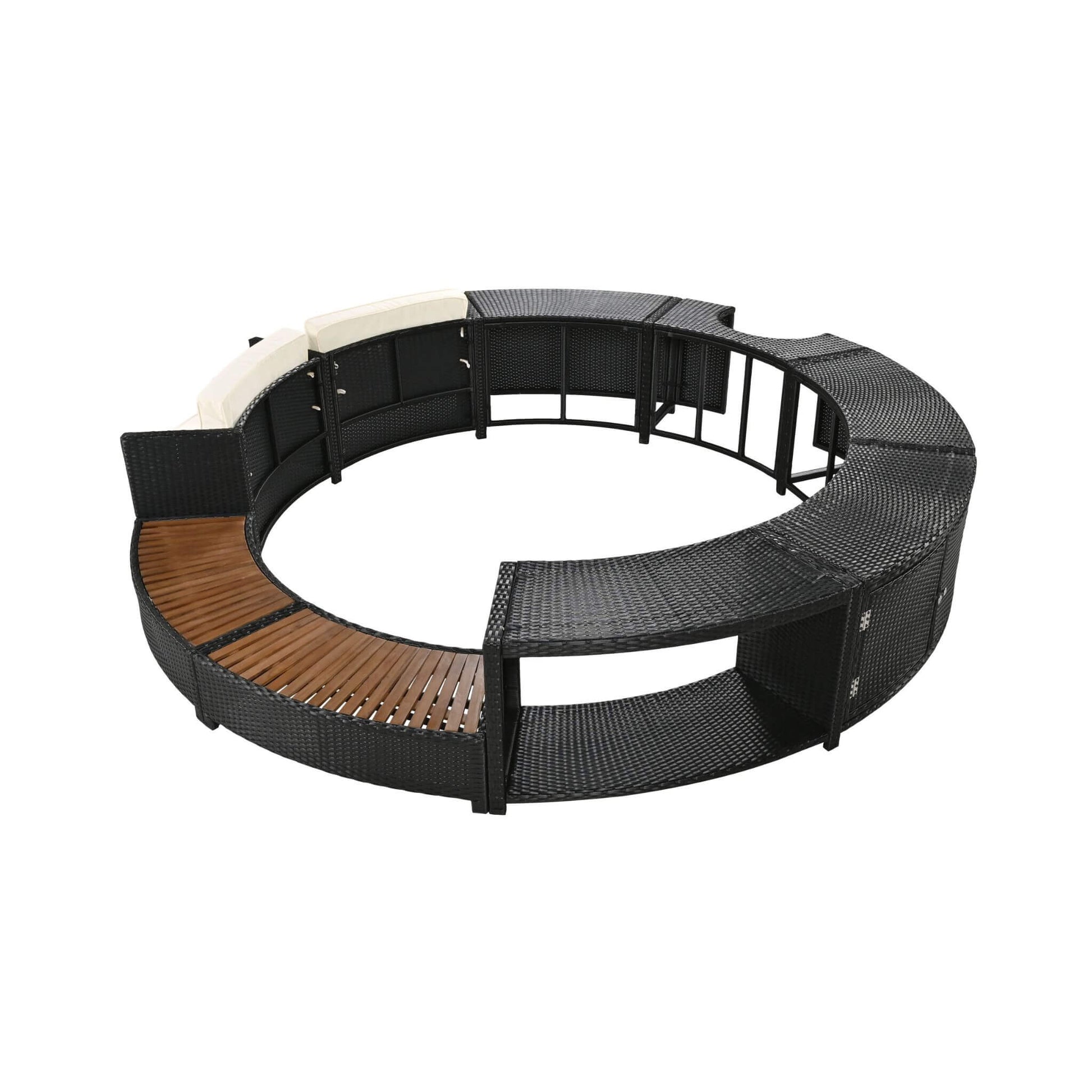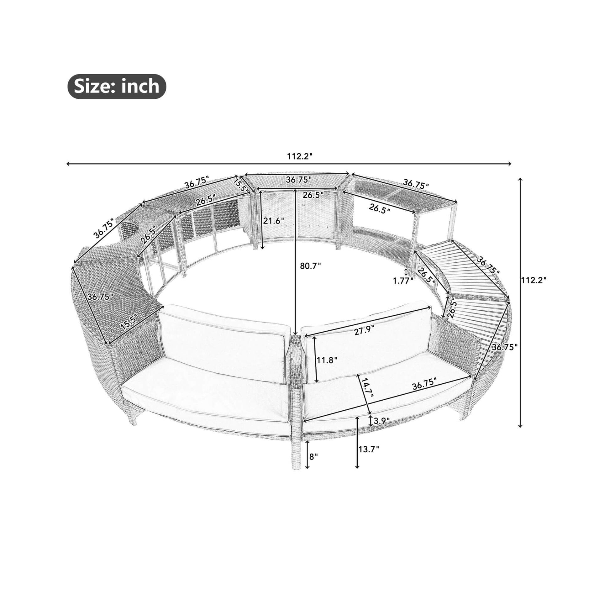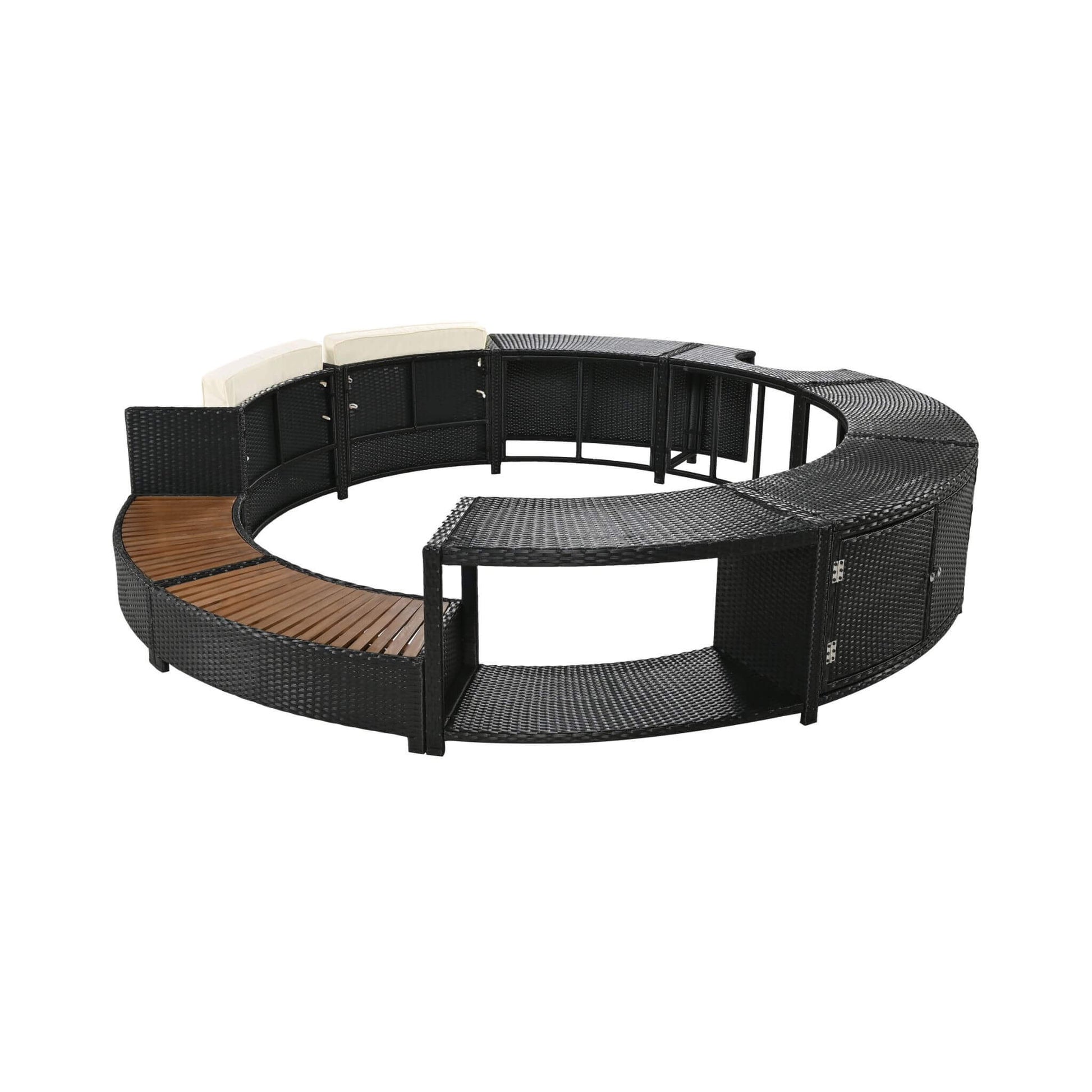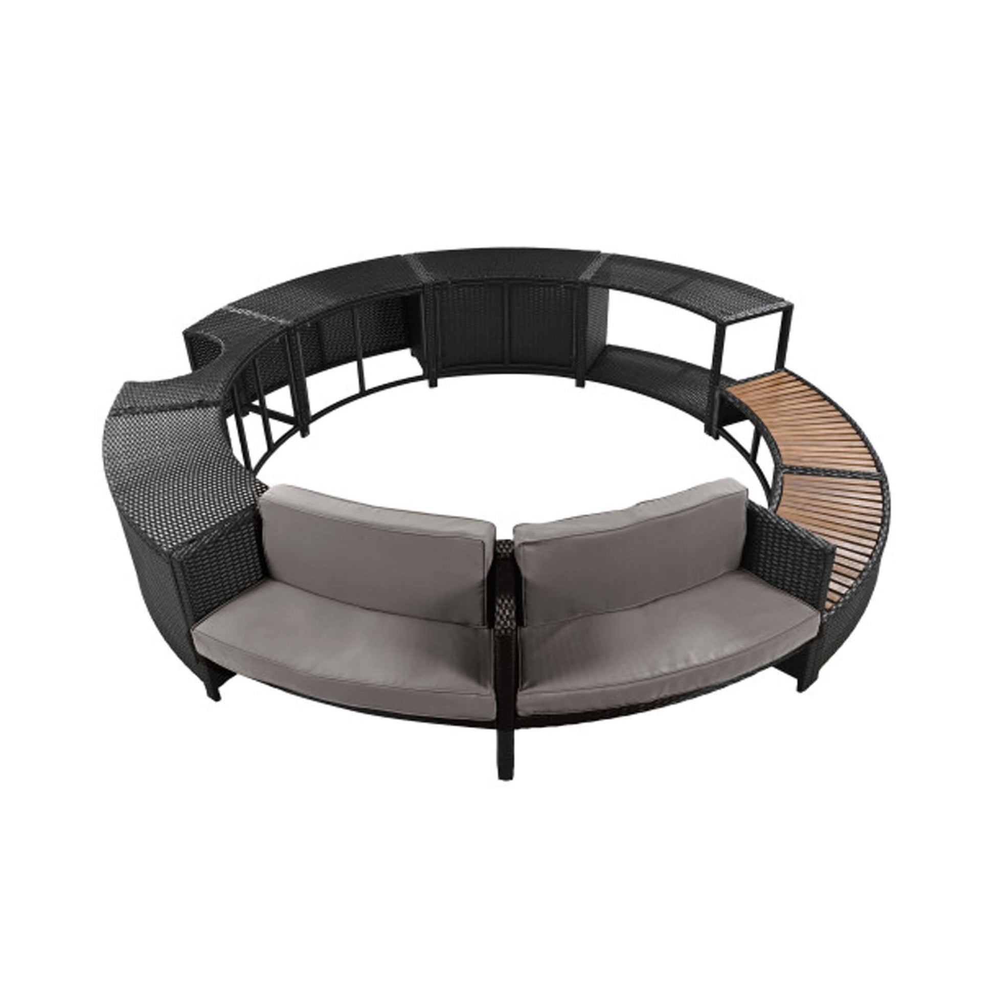 Elevate your spa experience with the Large Premium Surround Spa Patio Rattan Sofa Set. Designed specifically for portable spas, this elegant and versatile set offers the perfect blend of style, comfort, and functionality. Its sleek semi-circular design creates a cohesive and inviting space around your spa, making every dip a true indulgence. With customizable seating options and integrated storage compartments, this rattan sofa set redefines outdoor relaxation, transforming your patio into a sophisticated retreat.