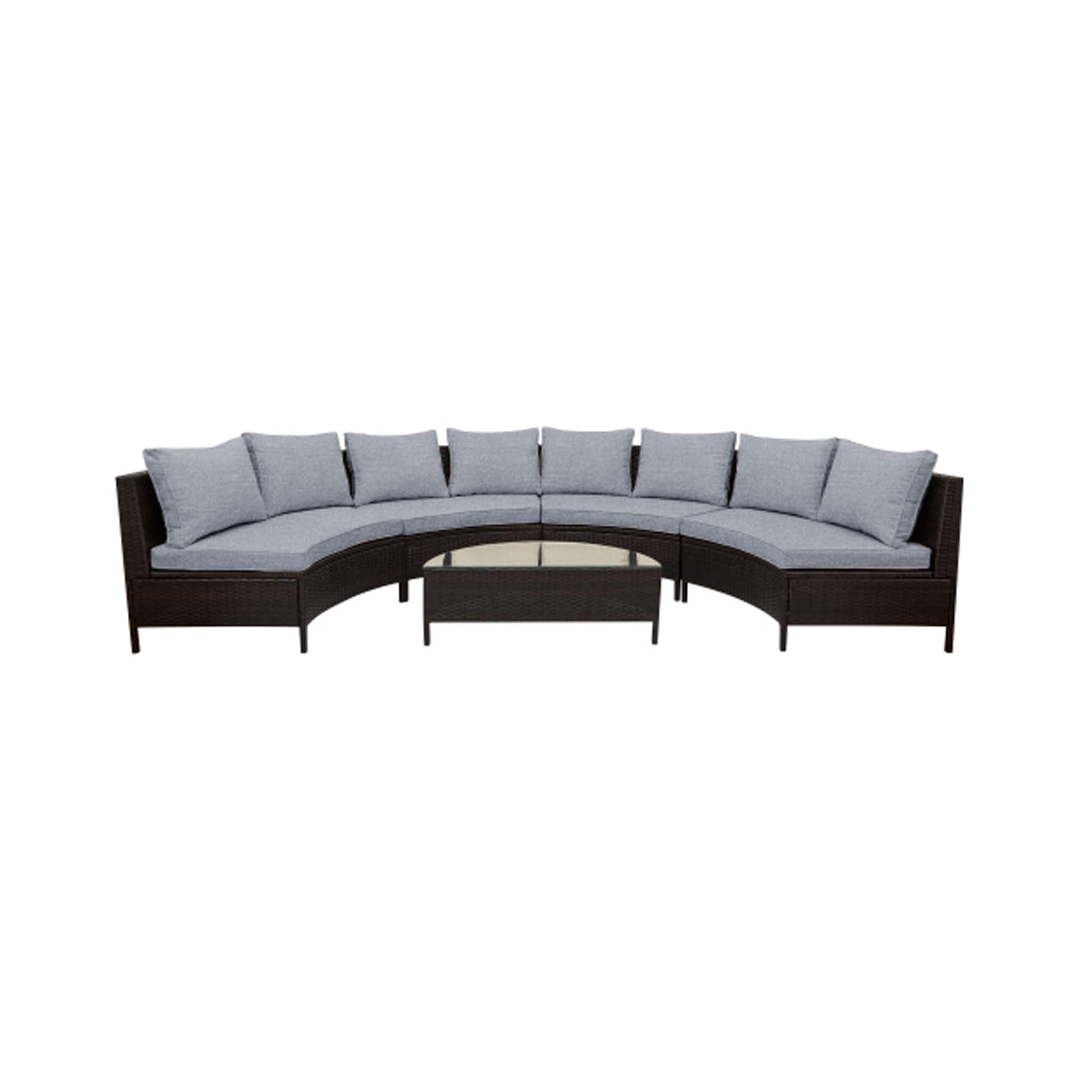 This sectional is as adaptable as your lifestyle. Its modular design allows the pieces to be rearranged into countless configurations, from an intimate nook for romantic evenings to a social layout for lively gatherings. With its neutral beige tones and elegant rattan texture, it complements any outdoor aesthetic. This set was made for those who appreciate beauty, simplicity, and the value of multi-purpose design.