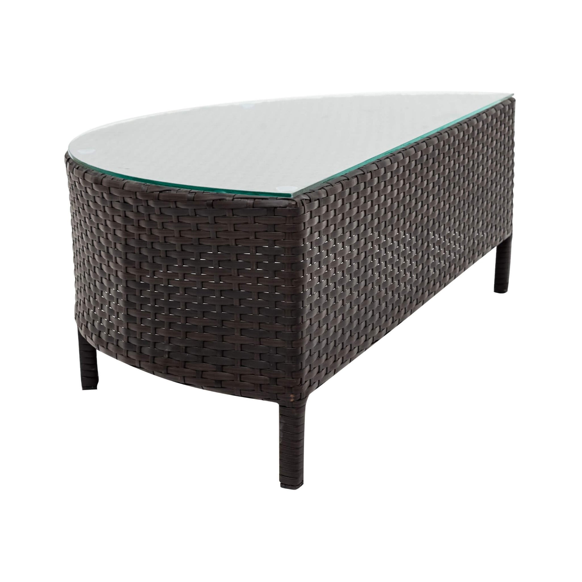 - The half-moon glass-top table radiates sophistication while providing a sturdy surface for accessories or refreshments.