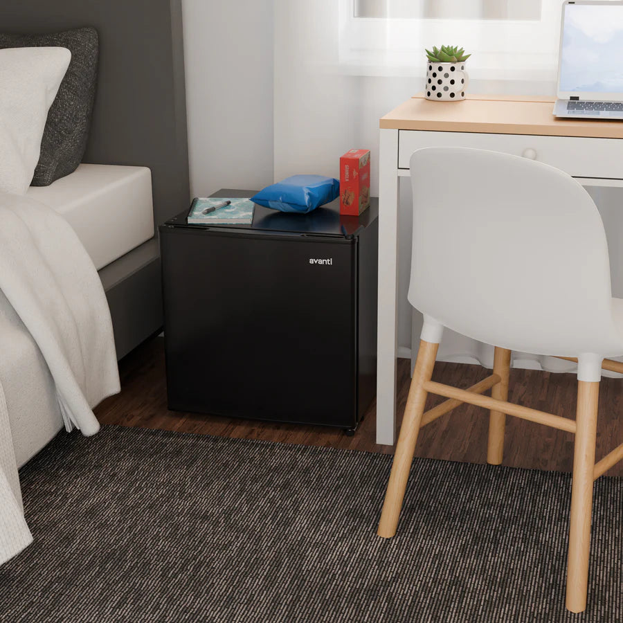 Meet your new go-to appliance: the Avanti 1.6 Cu. Ft. Compact Refrigerator, perfectly designed for those snug spaces in your life—whether it’s your office, dorm room, or bedroom, this versatile appliance combines convenience and efficiency. The Avanti mini fridge is designed to maximize space efficiency without compromising on performance. With a 1.6 cu. ft. capacity, it offers ample storage for your drinks, snacks, and small food items. The refrigerator features a convenient 2-liter bottle storage on the door, making it easy to grab your favorite beverages. The separate chiller compartment is perfect for storing items that require quick cooling, ensuring they stay fresh longer. The removable wire shelf allows you to customize the interior layout to suit your needs. Equipped with full range temperature control, you can easily adjust the settings to keep your contents at the optimal temperature. The manual defrost feature simplifies maintenance, keeping your refrigerator running smoothly. The space-saving recessed door handle adds a stylish touch to the overall design. The reversible door gives you the flexibility to set the door swing to either the left or right, depending on your space layout. For added peace of mind, this Avanti refrigerator is backed by a 1-year manufacturer limited warranty. Elevate your cooling experience with the Avanti 1.6 Cu. Ft. Compact Refrigerator, the perfect blend of convenience, efficiency, and style.