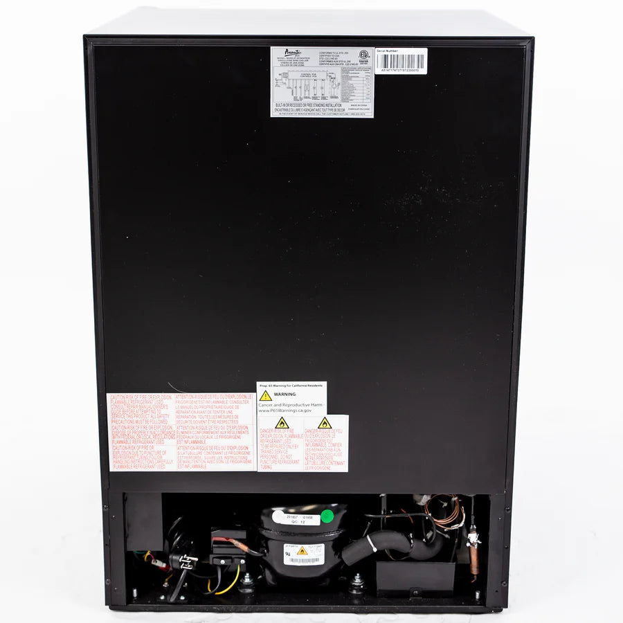 Keep wine perfectly chilled in this dual-zone, 49-bottle capacity wine from Avanti. This wine fridge is ideal for the living room, office, man cave, she-shed, bar, basement, or anywhere you want to store your wine collection beautifully. Easily view your wine choices through the glass door and pull-out the vinyl-coated shelves with wooden fronts to select the bottle of your choosing. This wine cooler features automatic defrost, so your wine stays perfectly chilled and a specially designed shelf for Burgundy bottles. Select the right settings at the touch of a button and monitor the temperature (C°/F°) with the temperature monitor display.