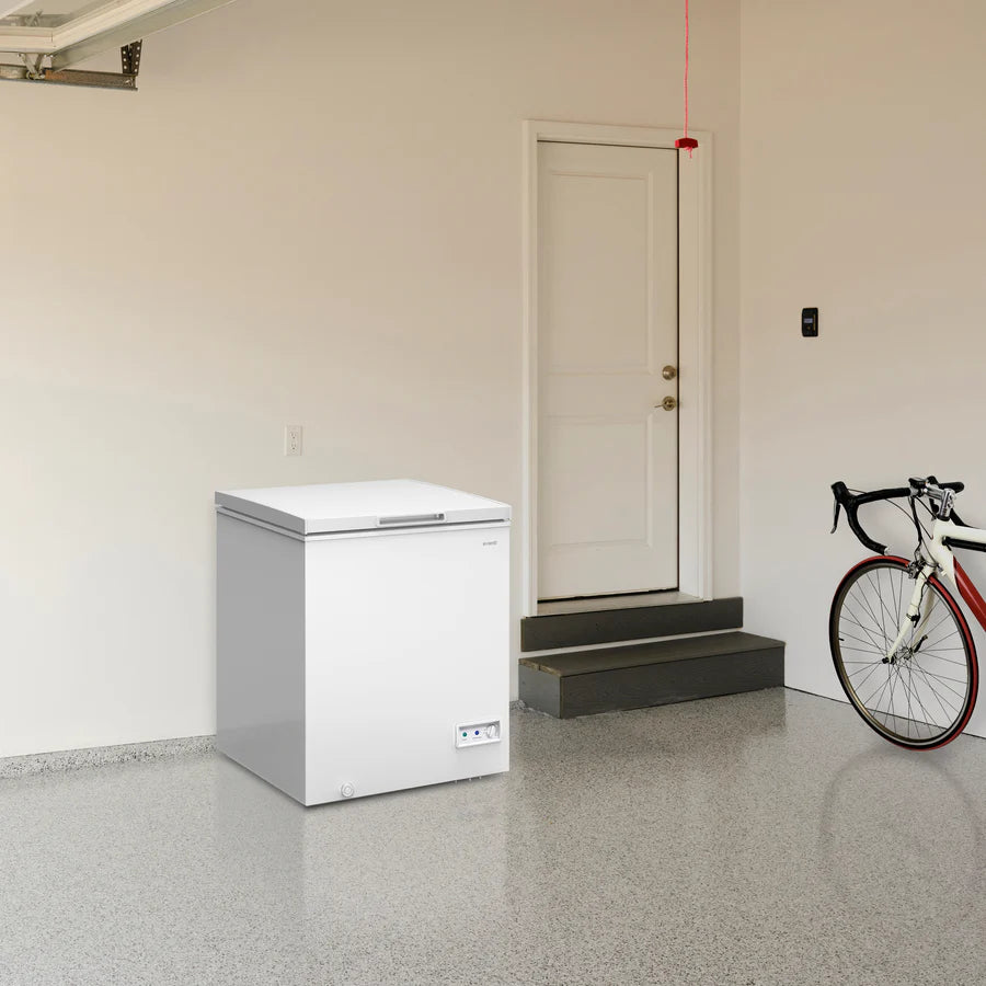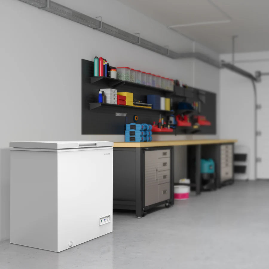 Discover the Avanti Garage Ready Convertible Chest Freezer, a versatile appliance designed to meet your unique cooling needs. Engineered with a Garage-Ready design, this chest freezer excels in non-climate-controlled environments such as garages and basements. The 2-in-1 convertible feature with an adjustable thermostat provides the flexibility to transform this freezer into a fridge, adapting effortlessly to your changing storage requirements. In freezer mode, this appliance operates efficiently from 0°F to 110°F, while the cooling mode is optimized between 50°F and 109°F, ensuring optimal performance in a range of temperatures. The lift-up lid, coupled with the integrated handle, not only enhances accessibility but also adds a touch of modern sophistication to your space. Keep your frozen items neatly organized with the removable storage basket, making it easy to locate your desired items in a flash. The Avanti Convertible Chest Freezer is equipped with a power indicator light that enables you to quickly verify the freezer's operational status. Additionally, the external temperature control feature allows you to adjust settings without the need to open the lid, ensuring energy efficiency and temperature consistency. Say goodbye to ice build-up with the manual defrost function, maintaining freshness and consistent freezing. Cleanup is a breeze with the defrost water drain, simplifying maintenance tasks and ensuring hassle-free usage. Elevate your storage capabilities with the Avanti 5.0 cu. ft. Garage Ready Convertible Chest Freezer – where smart design meets reliable performance for all your food storage needs.