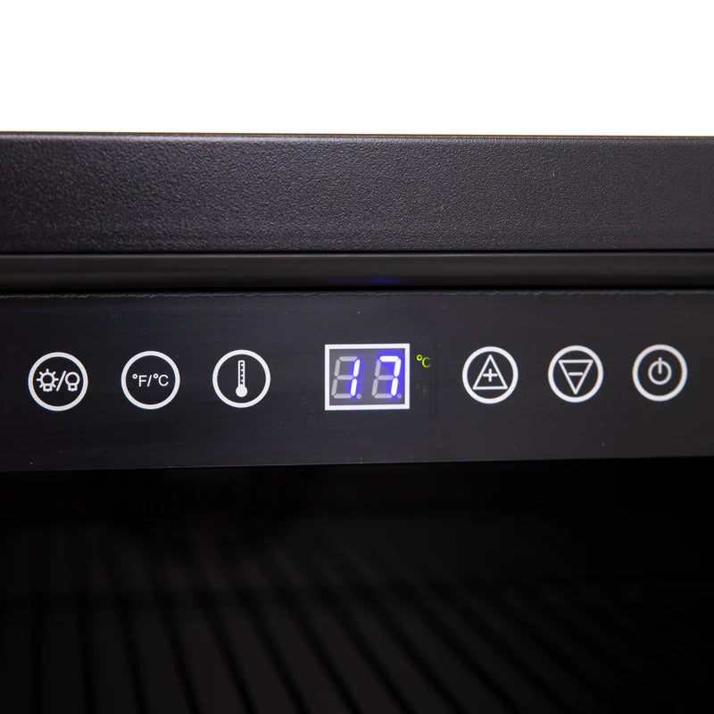 Keep your favorite drinks close by in this compact, 5.0 cubic feet beverage center with stainless steel frame and double pane tempered glass door from Avanti. The perfect lockable mini fridge for the office, dorm, man cave, she-shed, bar, bedroom, or anywhere you need a little extra refrigerator cooling and storage space. Easily view your drink choices through the glass door. Use the adjustable, removable shelving to arrange drinks for easy access throughout the day. This compact fridge holds 130 12 oz. cans features automatic defrost, so your drinks stay perfectly chilled. Select the right settings at the touch of a button and monitor the temperature with the temperature monitoring LED electronic display.