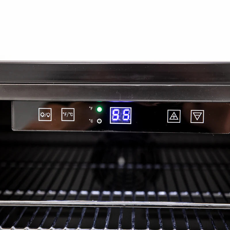 Keep your favorite drinks close by in the compact, 5.2 cubic feet beverage center with stainless steel frame and double pane tempered glass door from Avanti. This 24-inch wide, single-zone mini fridge is perfect for the office, dorm, man cave, she-shed, bar, bedroom, or anywhere you need a little extra refrigerator cooling and storage space. Easily view your drink choices through the glass door. Use the wire shelving and specially designed bottom shelf to arrange beverages for easy access throughout the day. This compact fridge holds 133 cans (12 oz) features automatic defrost, so your drinks stay perfectly chilled. Select the right settings at the touch of a button and monitor the temperature (C°/F°) with the temperature monitoring LED electronic display.