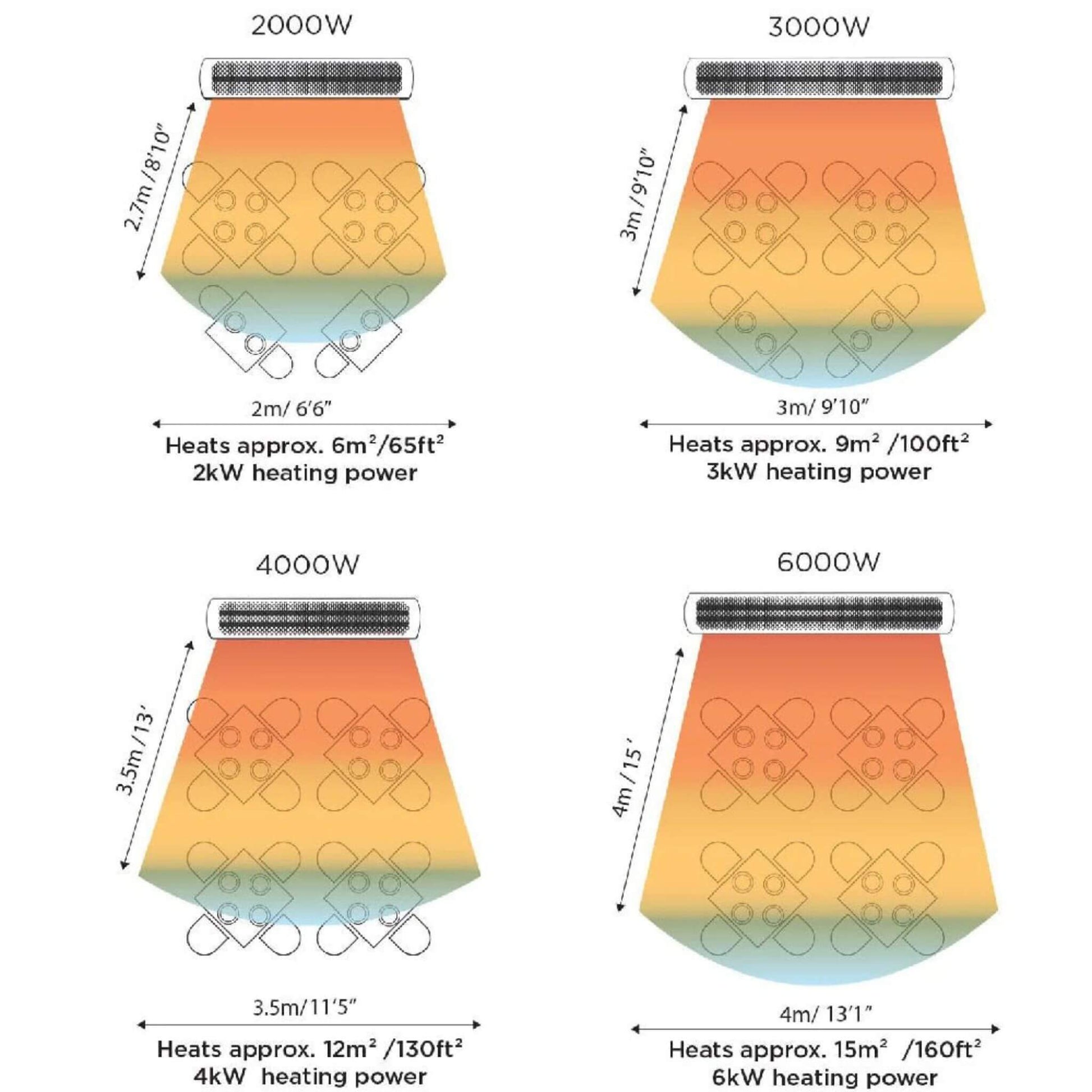 - Delivers 2000W of heating power with a single element, perfect for creating comfortable outdoor zones.