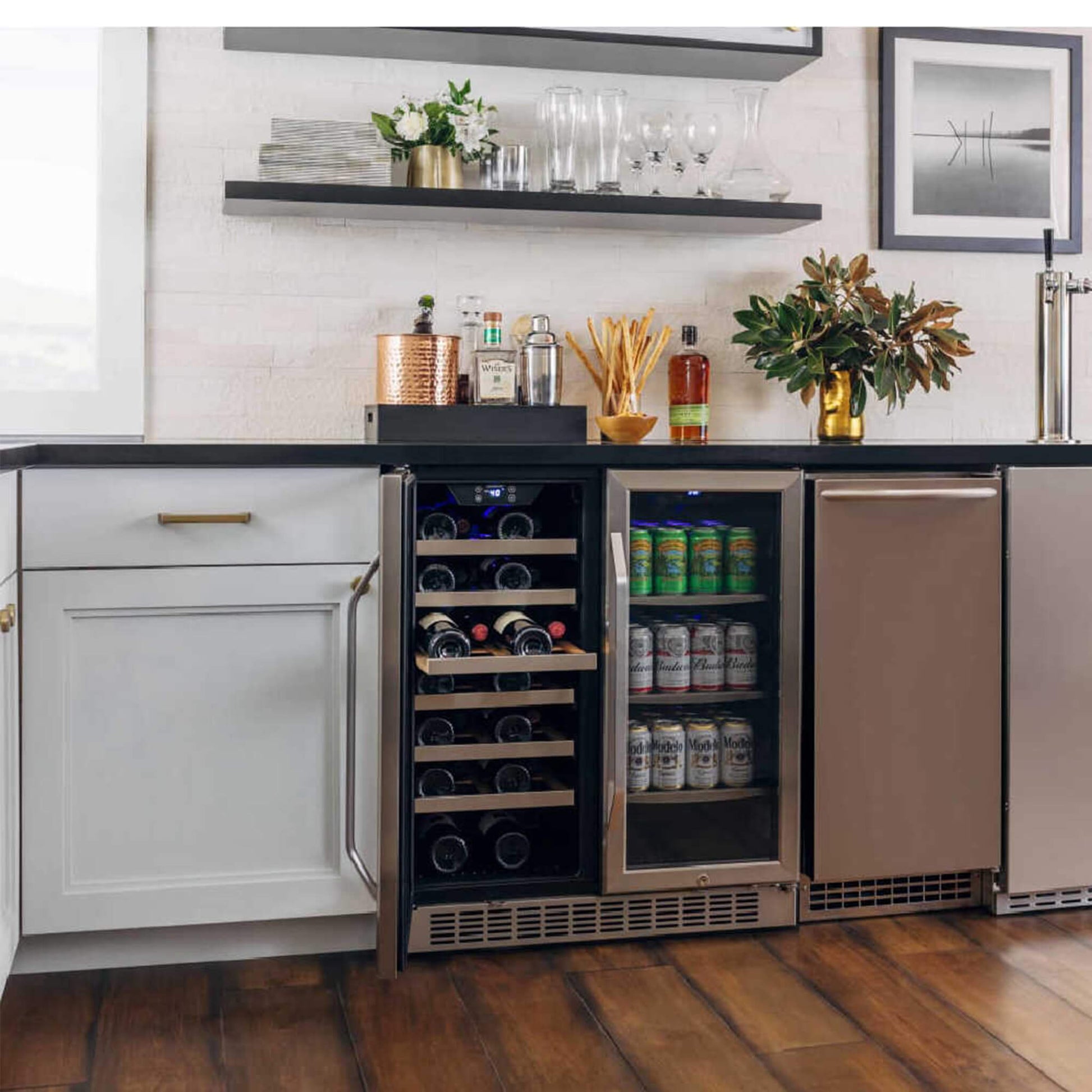 - You will elevate the modern aesthetic of your kitchen or home bar with a sleek stainless steel design that fits seamlessly under your counter.