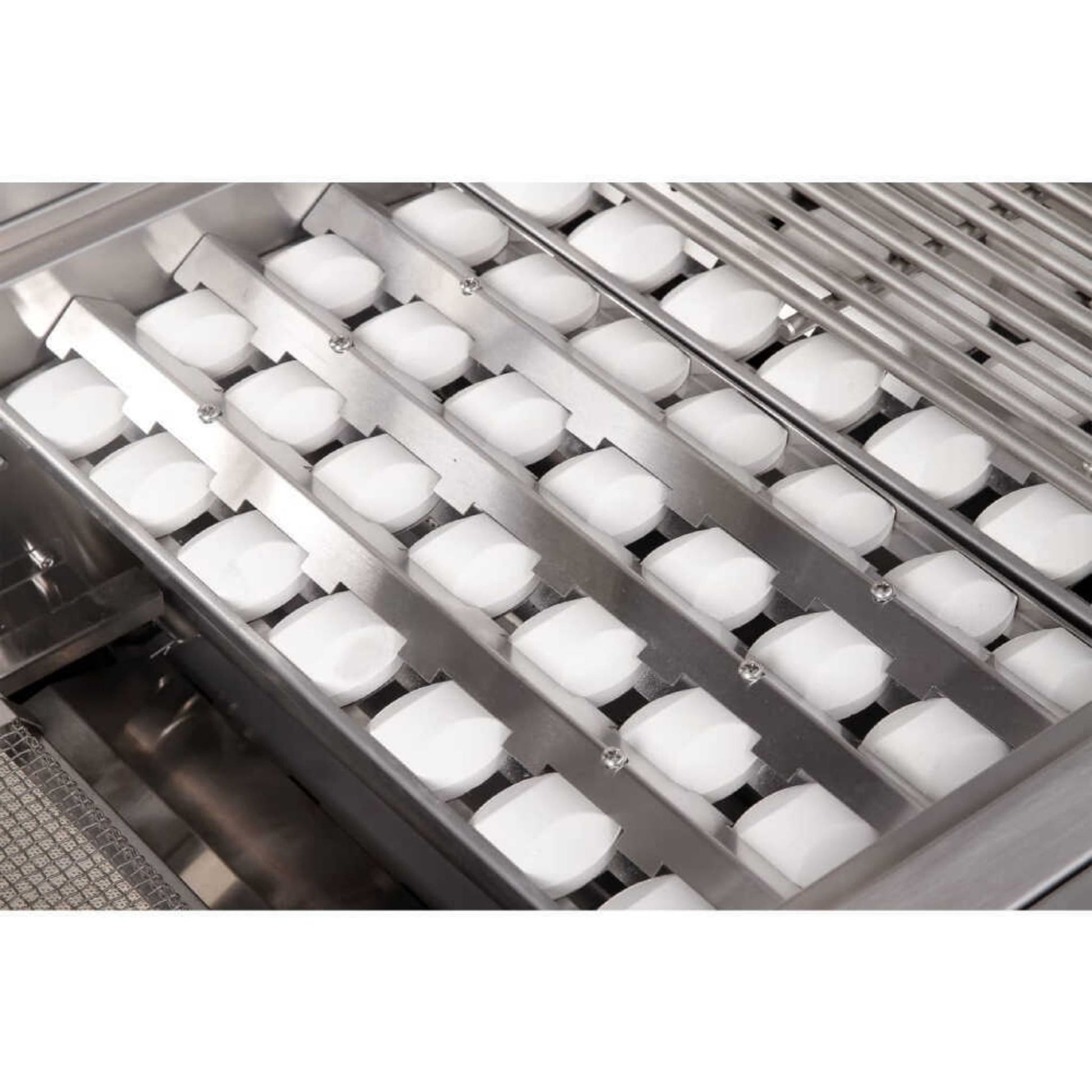 - Three heavy-duty H-shaped cast stainless steel burners and a dedicated infrared back burner pump out a collective 89,000 BTUs, working in tandem with stainless steel zone dividers and ceramic briquettes to provide precise independent temperature zones and even heat distribution across the spacious 628 square inch cooking surface.