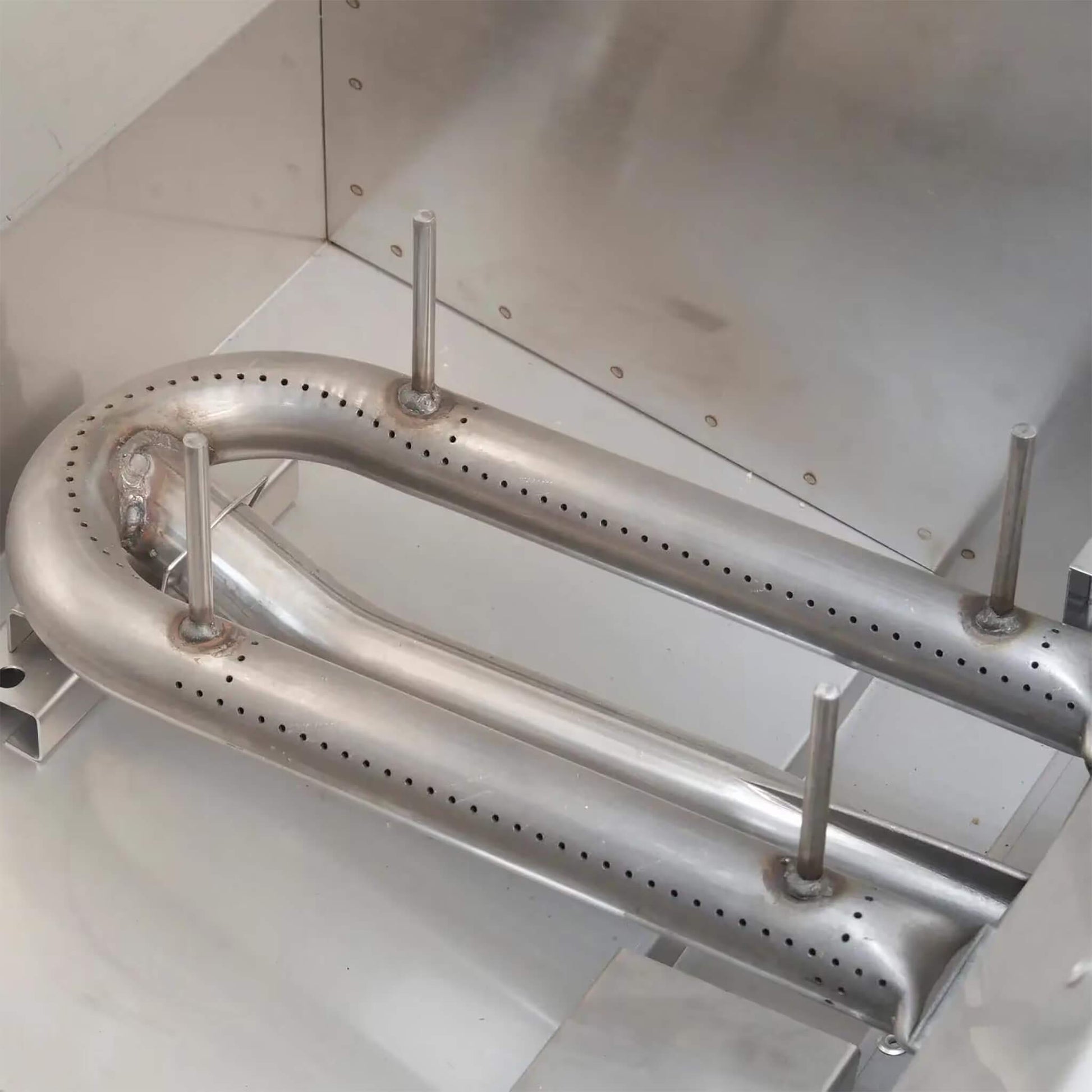 - Durable and luxurious, this grill is constructed from 304-grade stainless steel with a sleek satin finish. Ergonomically designed comfort-touch knobs and an angled analog thermometer make it easy to monitor and control your grill. The integrated wind guard ensures a steady flame, even on windy days.