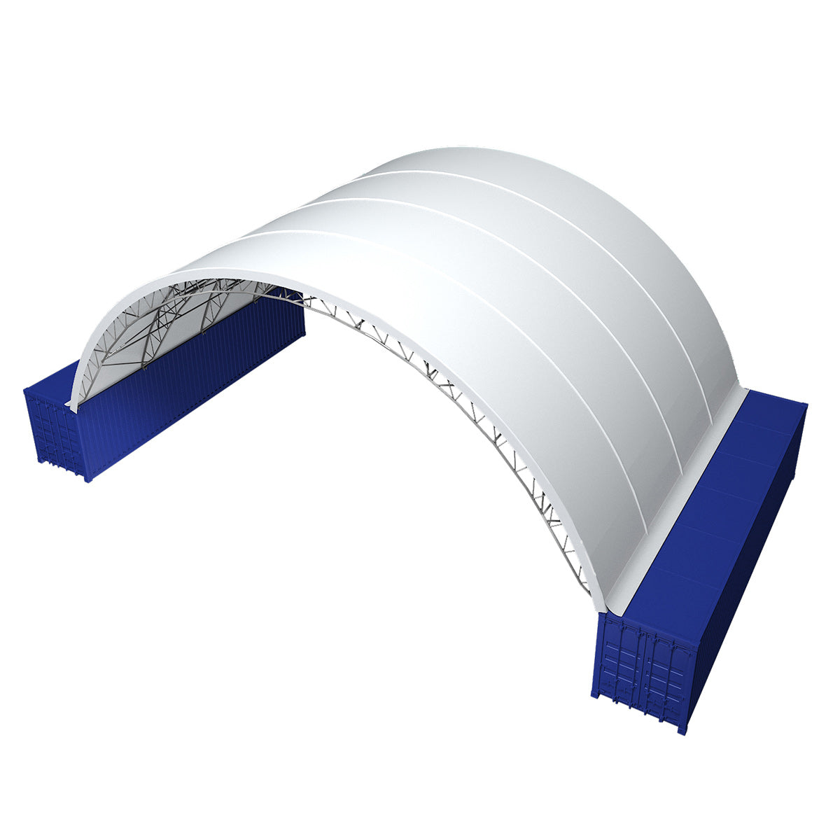 Container-Mounted Canopy Design – Createa s large, clear-span covered space between containers.