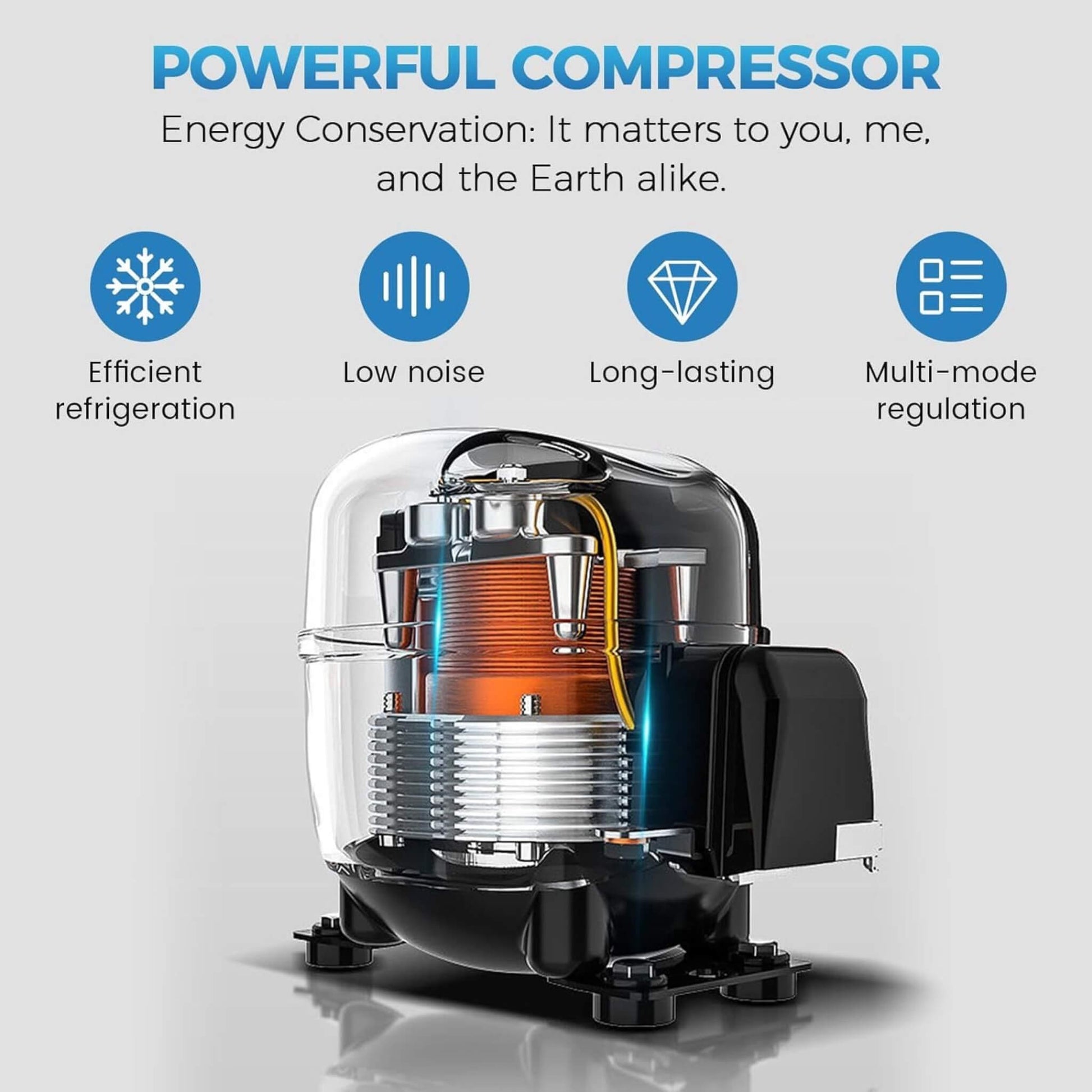 Eco-friendly cooling powered by R290 refrigerant gas, offering a sustainable and environmentally friendly solution.