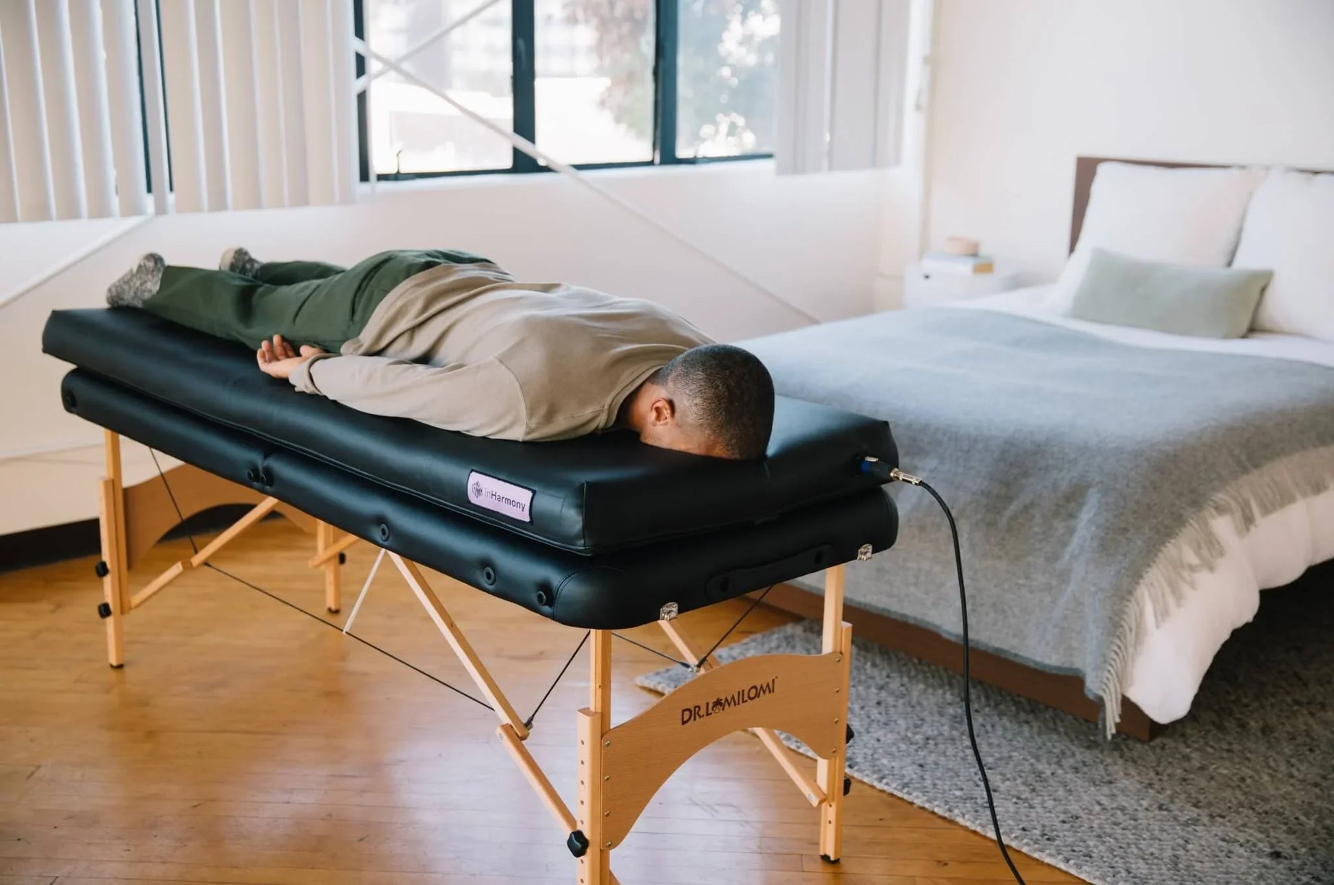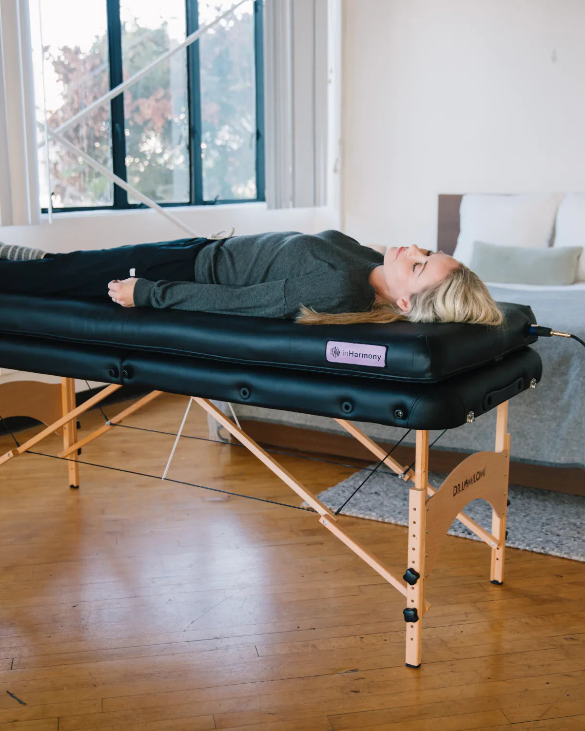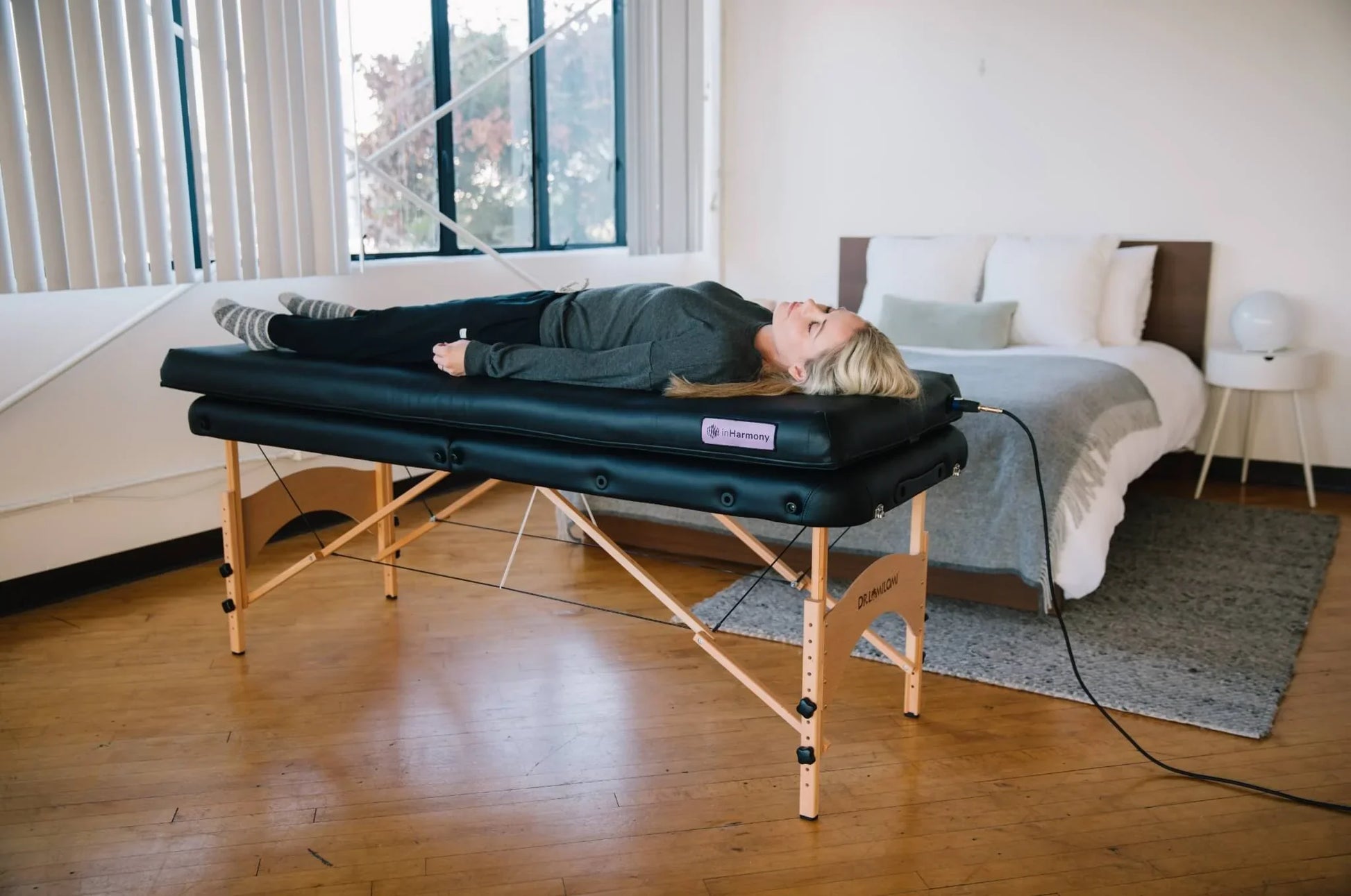 Introduced in 2018, the inHarmony Practitioner was crafted to enhance body treatments with the benefits of vibration therapy. This system provides a holistic experience by blending vibro-tactile sensations with vibroacoustic sounds. However, a massage table or stand isn't part of the package.