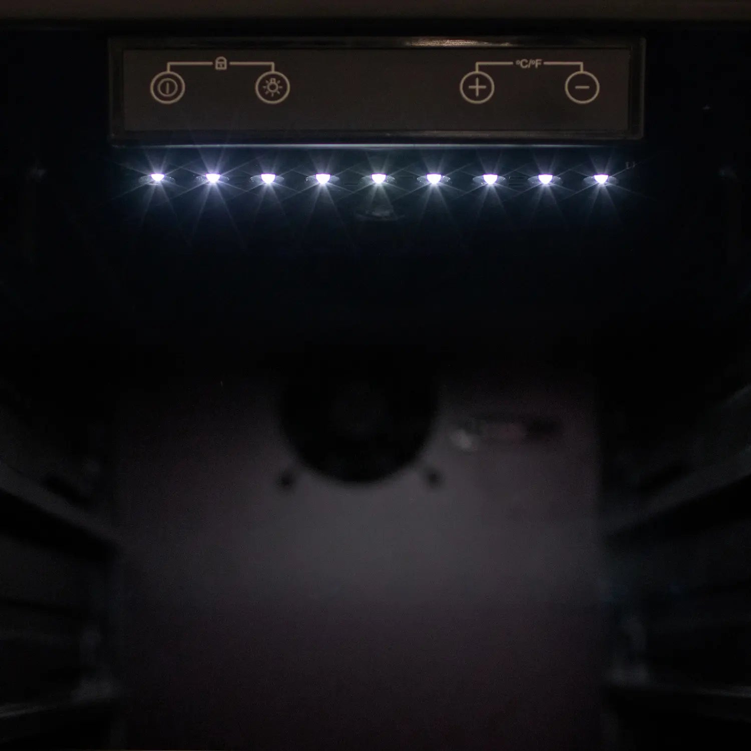 This sleek and compact beverage refrigerator is built for versatility, with a digital control panel that lets you precisely adjust the internal temperature between 32°F and 72°F. Its durable, weather-resistant stainless steel construction makes it ideal for both indoor and outdoor use, offering long-lasting performance in any environment. Forced fan cooling technology ensures rapid cool-down and consistent temperatures, keeping your drinks perfectly chilled at all times.