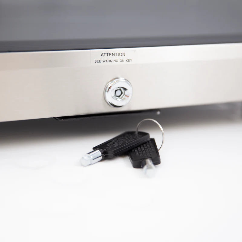 Keep your favorite drinks close by in this compact, 3.0 cubic feet beverage center fridge with stainless steel frame and double pane tempered glass door from Magic Cool. The perfect lockable mini fridge for the office, dorm, man cave, she shed, bar, bedroom, or anywhere you need a little extra refrigerator cooling and storage space.