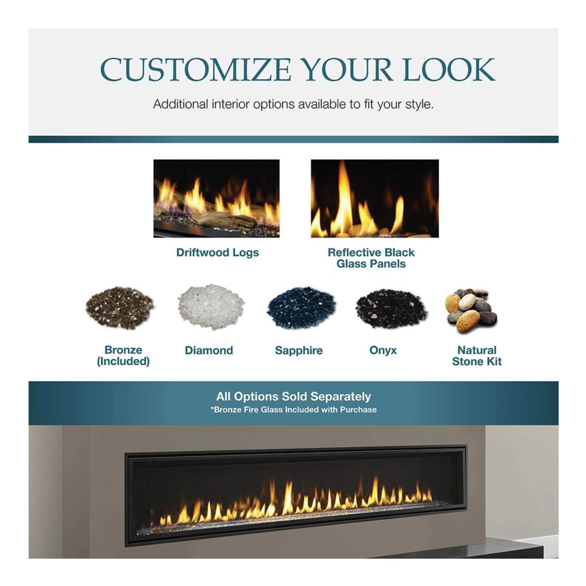 Adds a brilliant, ambient glow to your hearth with or without a fire burning.