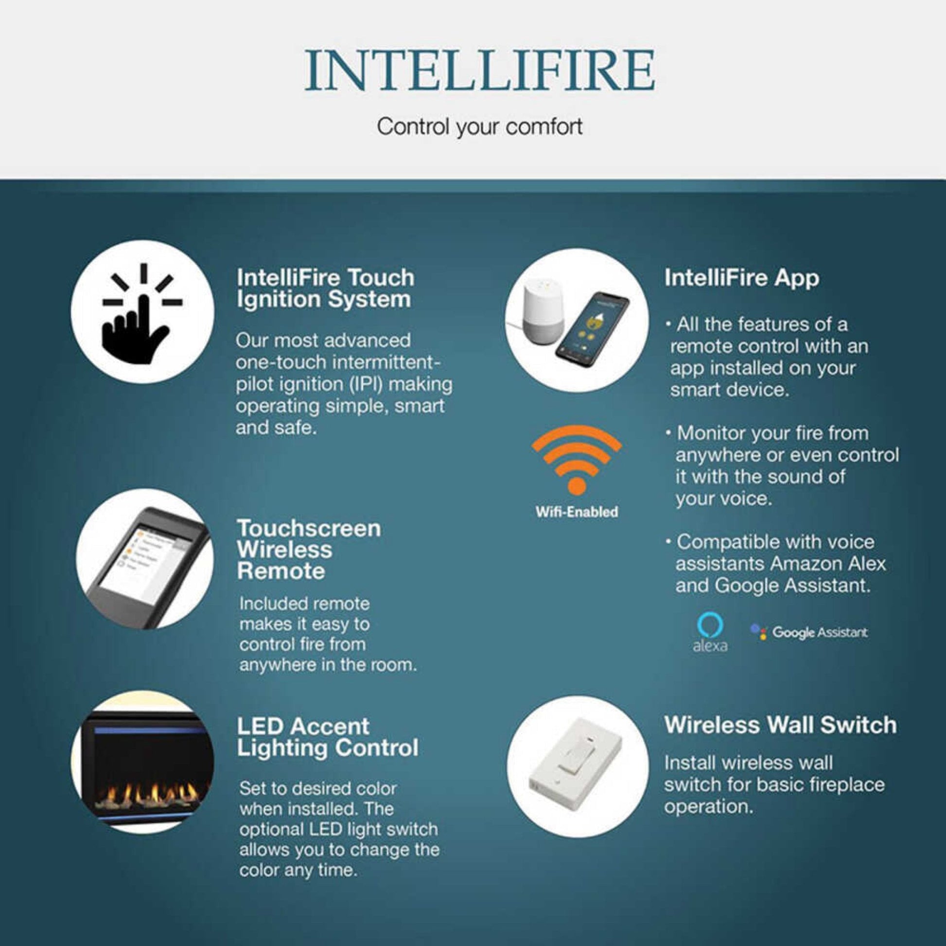 The IntelliFire Touch® system provides easy control with a touchscreen remote or wireless wall switch, and additional options like a Wi-Fi module for app control.