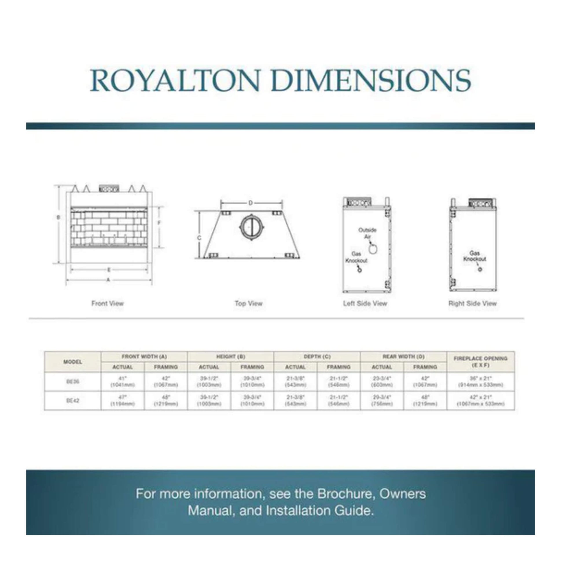 Whether you're enjoying a cozy night in or entertaining guests, the Royalton 42" provides a warm and inviting ambiance that transforms your home. Its timeless design and outstanding features make it a must-have for those who appreciate both beauty and functionality.