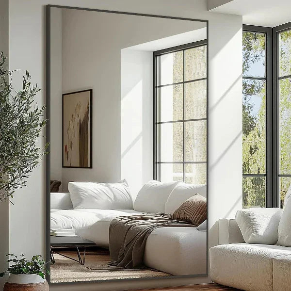 MELOMOIR Oversized Floor Mirror, Freestanding, Large Full Body Mirror for Bedroom, Living Room & Gym - Black Mirror with Tempered Glass