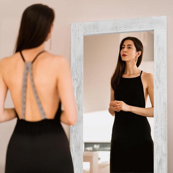 MELOMOIR Rustic Farmhouse Full Length Mirror, Wood Floor Mirror, Free Standing, Long for Bedroom, Living Room, Cloakroom, Weathering White