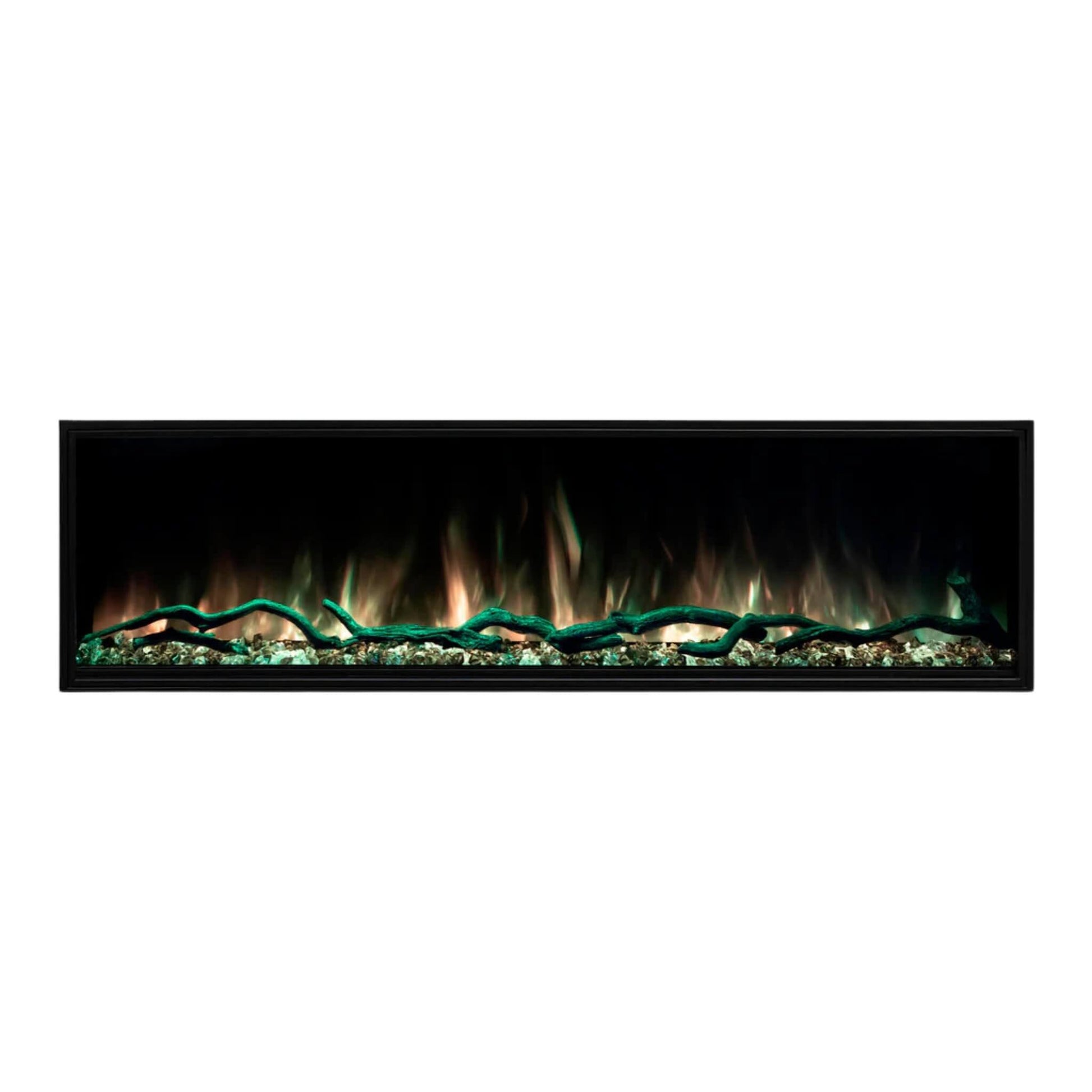 Featuring high-intensity RGB flame options, an RGB ember bed, and RGB accent lighting, this fireplace allows you to create the perfect ambiance to match any mood. Customize the look with clear acrylic stone media, black smoke acrylic crystals, and hand-painted driftwood logs.