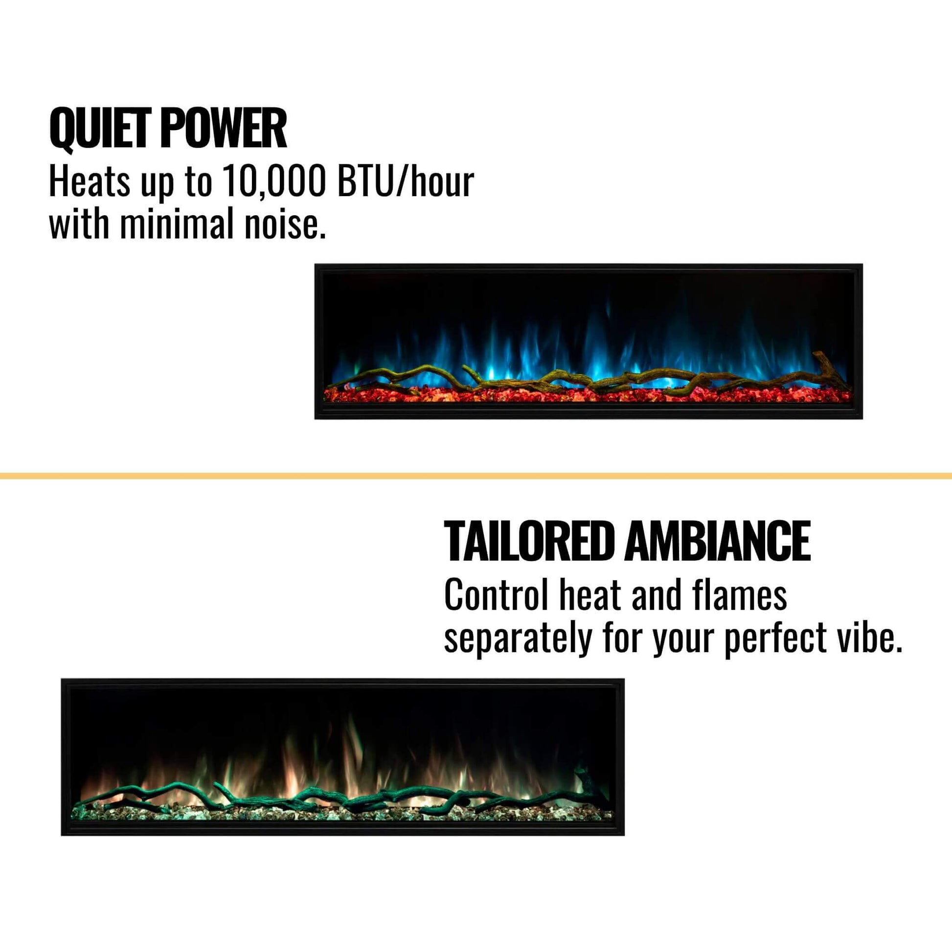 Control the heat and flame settings separately, giving you the freedom to adjust each element according to your preference for ultimate comfort and ambiance.