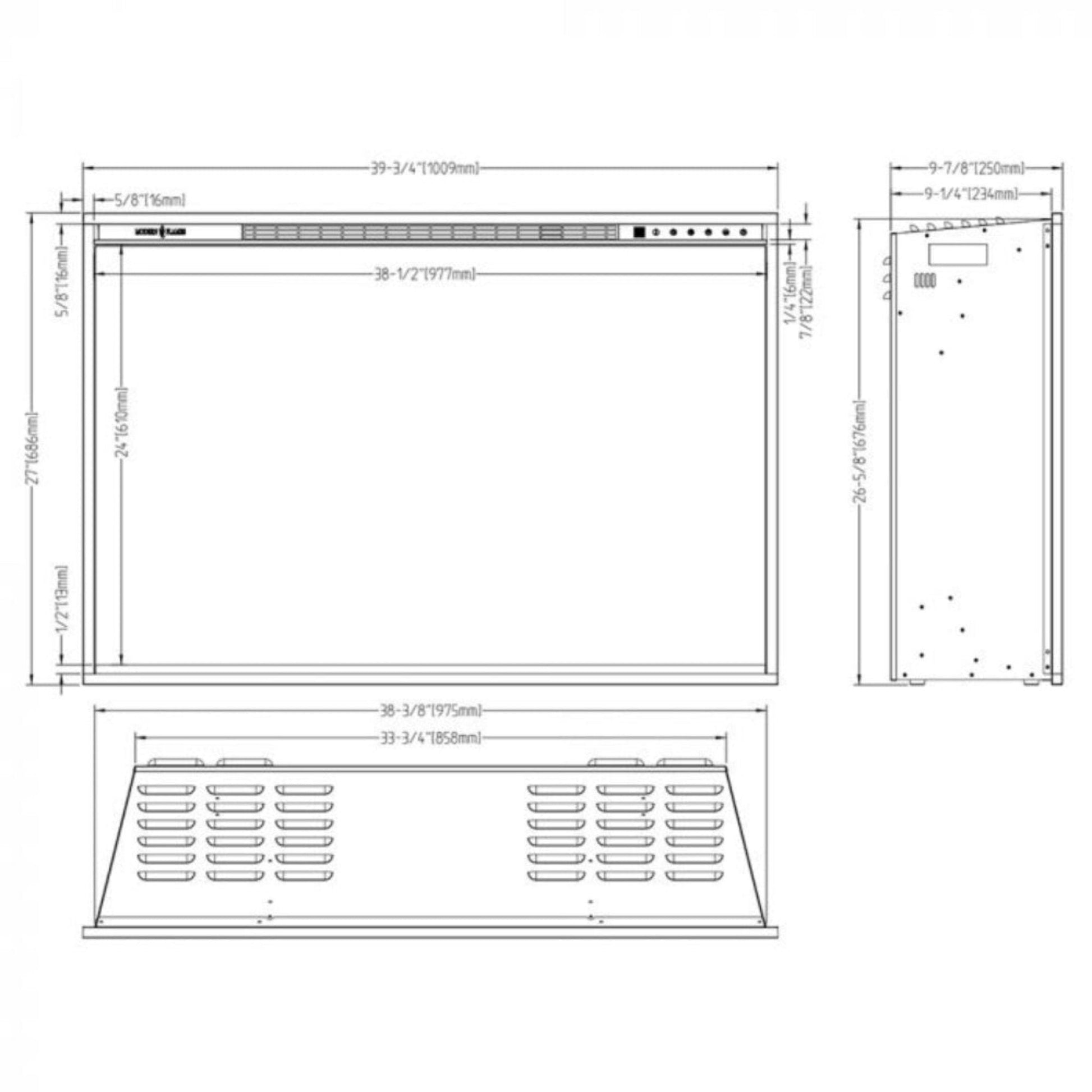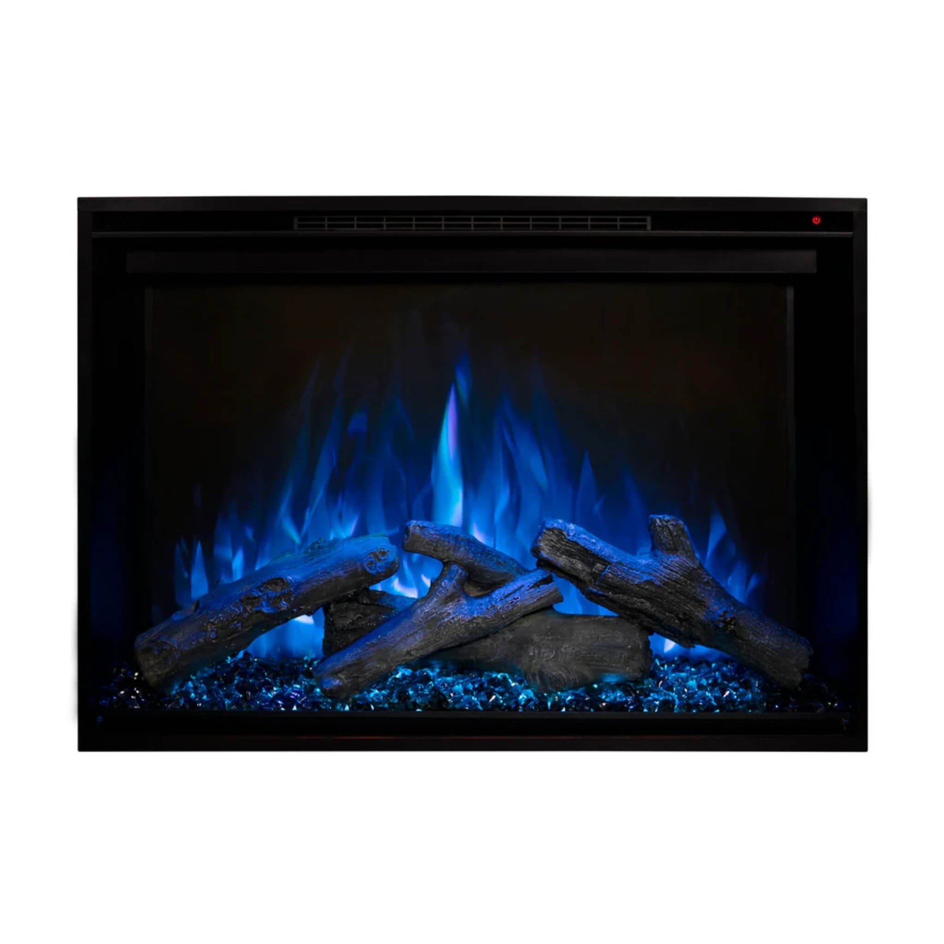 Designed for a built-in flush mount, the Redstone easily installs in a rough frame wall or a finished opening. It can also slide into an existing Zero Clearance wood-burning fireplace, requiring only 10” to 12” of depth.